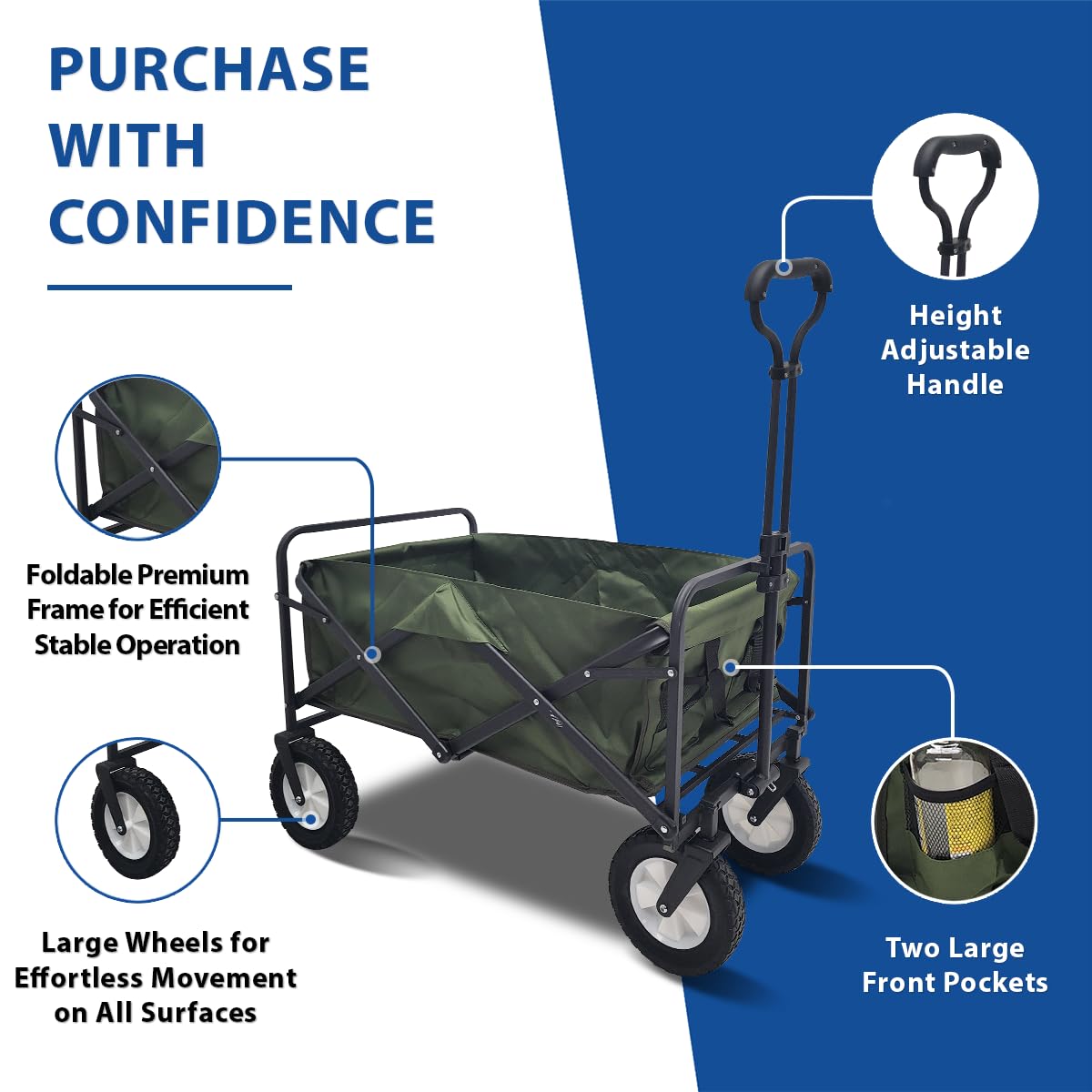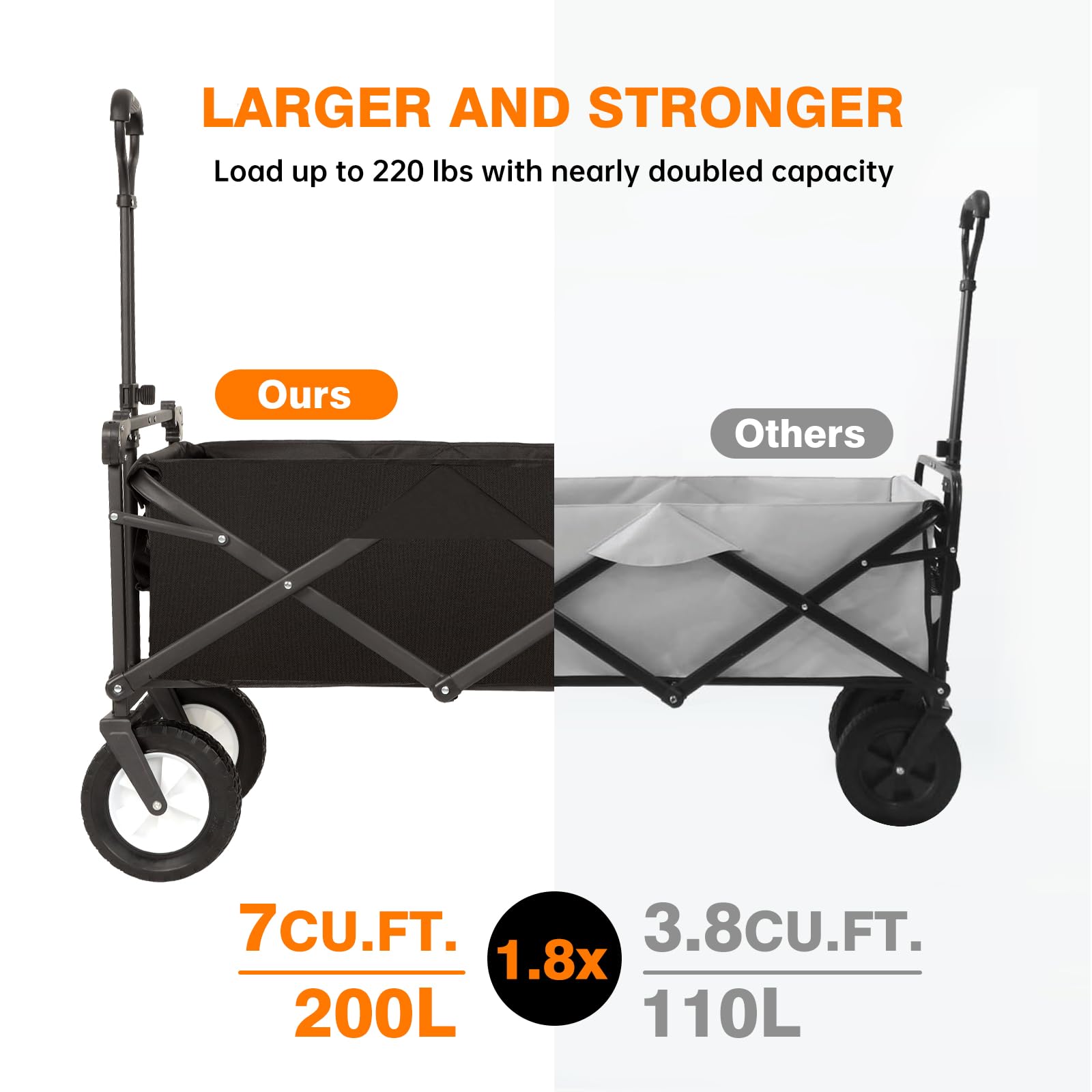 - u2705u3010 Heavy Duty Frame & Wheels u3011Made with a heavy duty steel frame and equipped with all-terrain wheels, it is strong enough to carry heavy loads up to 200 lbs while still ensuring the ease of pulling heavy cargo. Our wheels are extra wide at 8" enabling the cart roll more smoothly through all types of surfaces.