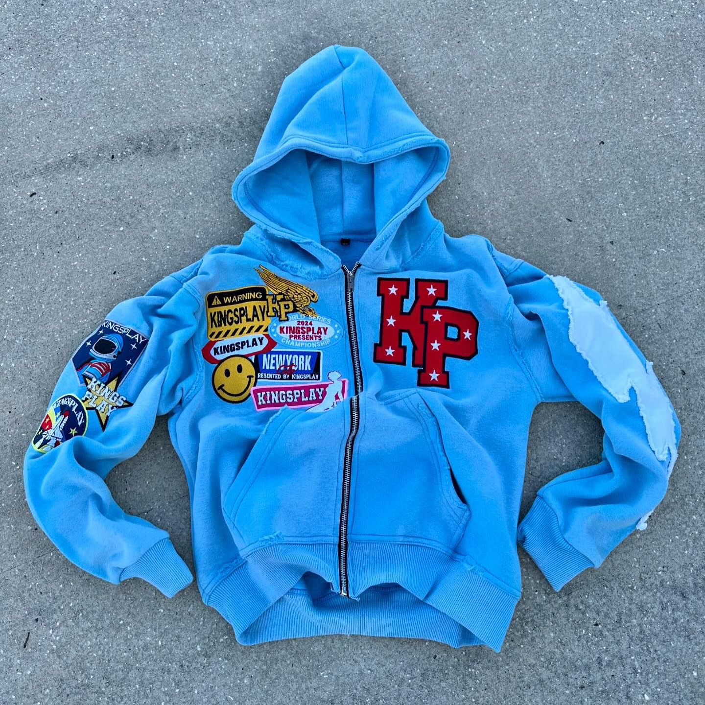 Lightning smiley face casual street zip-up hoodie