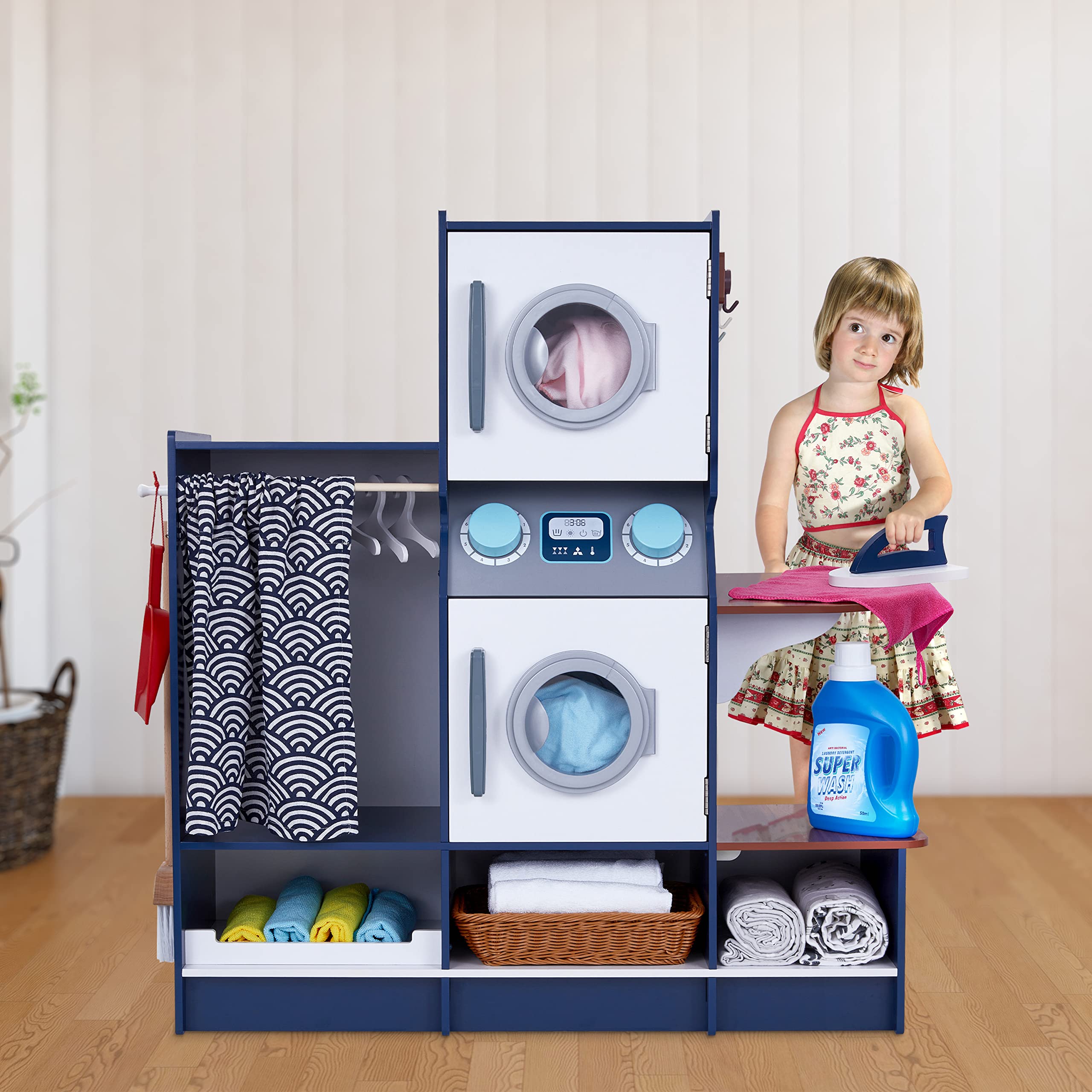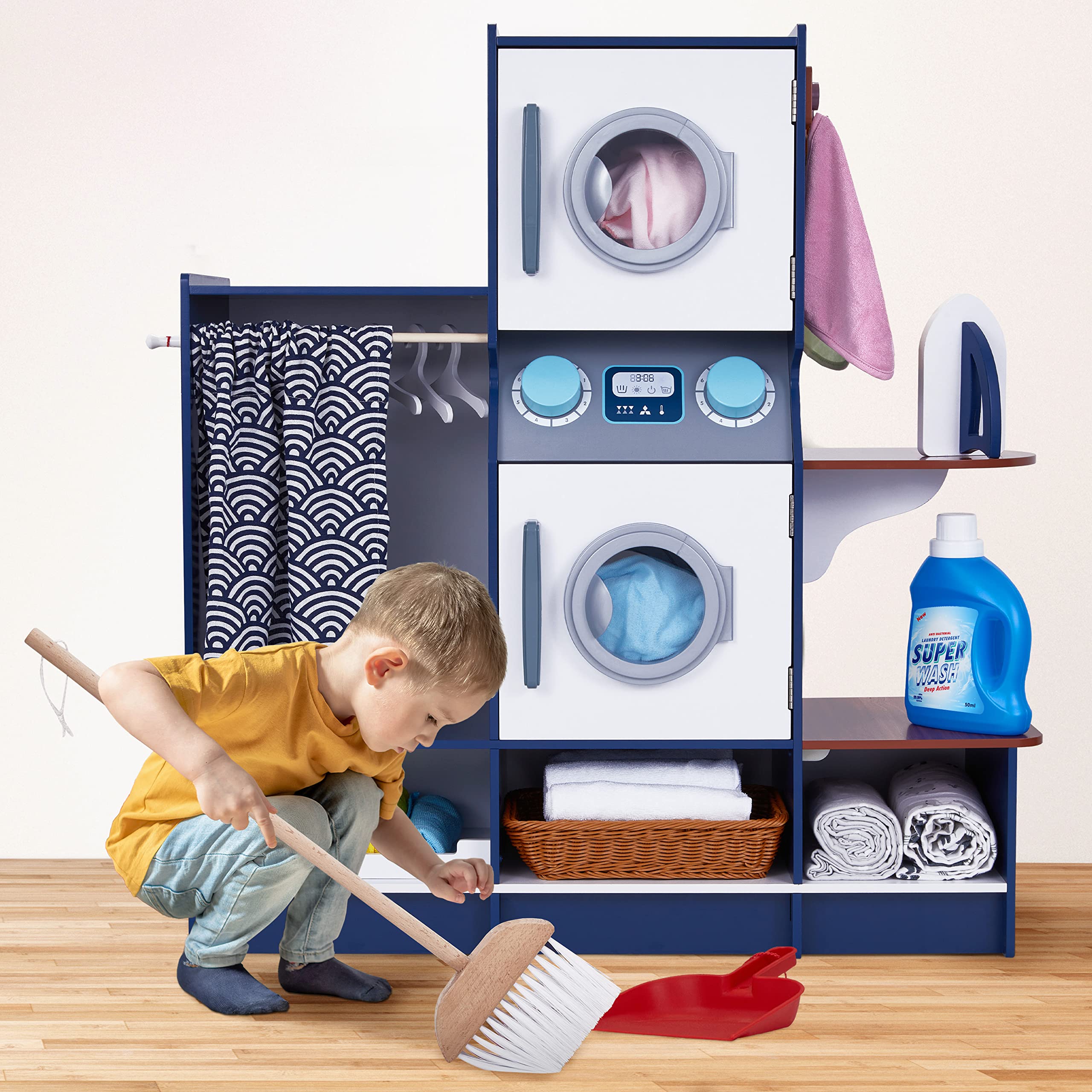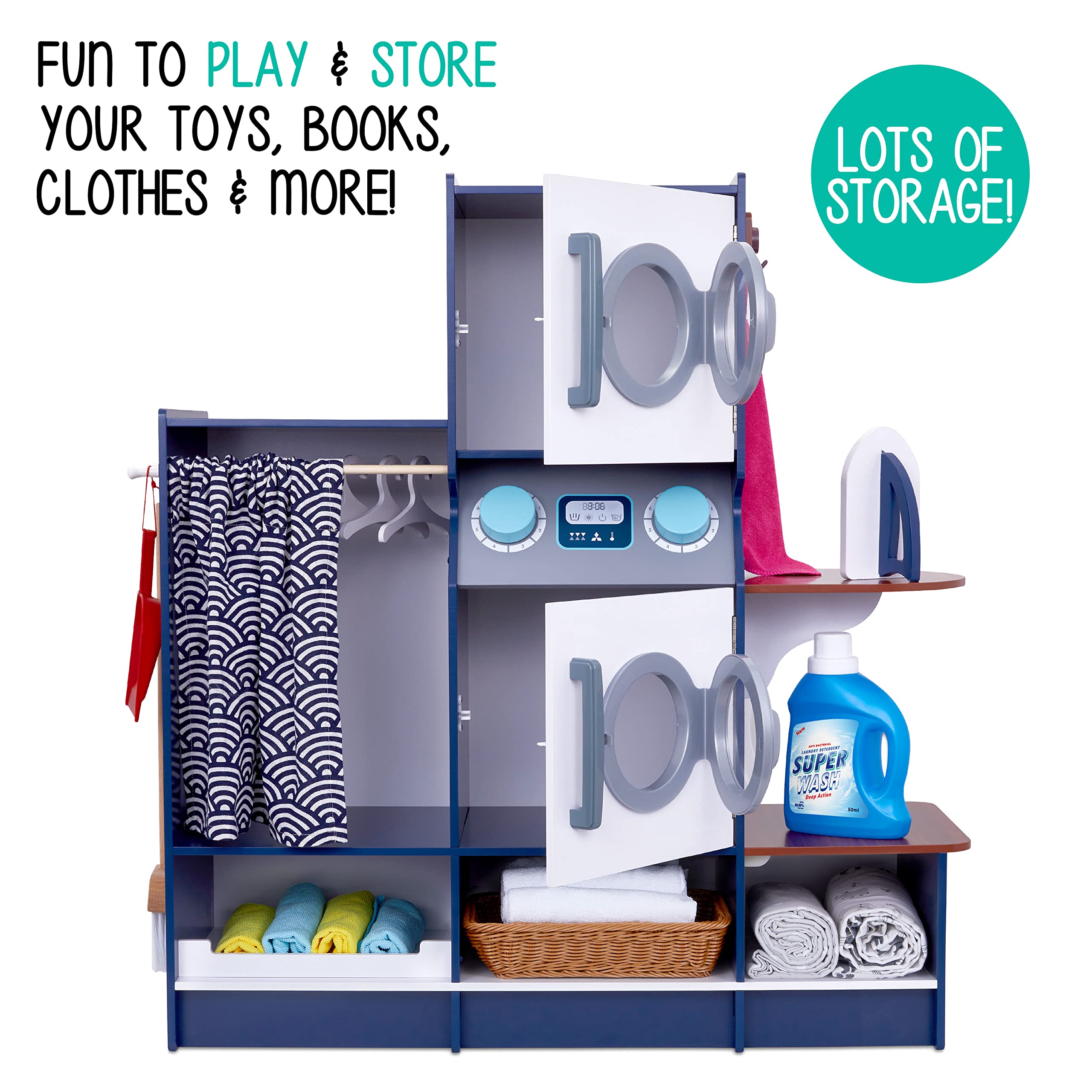 - THE TRUE-TO-LIFE LAUNDRY ROOM | All-in-One Kids Play Set Provides Hours of Fun, Educational Entertainment | See Little Ones Imagine, Explore, Learn & Pretend with a Variety of Lifelike Laundry Room Essentials Including a Washer, Dryer, Clothing Iron, Broom, Dustpan, Detergent Bottle, Etc.