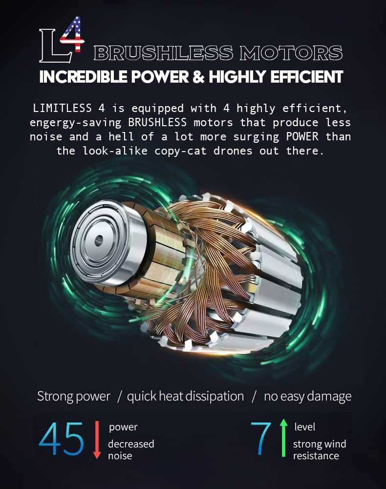 - EXTENDED FLIGHT & POWERFUL MOTORS: Drone-Clone Xperts LIMITLESS 4S drone boasts a 5,000mAh battery, granting 30 minutes of flight per charge. Our GPS drone with 4k camera for adults is powered by powerful brushless motors, enjoy reduced noise, prolonged battery life, and unmatched control.