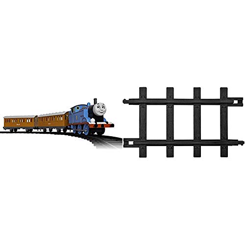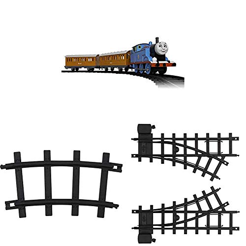 - Set Includes: Battery-powered Thomas steam engine, Annie passenger car, Clarabel passenger car, 32 curved, 8 straight, left switch and right switch plastic track pieces, RC remote control