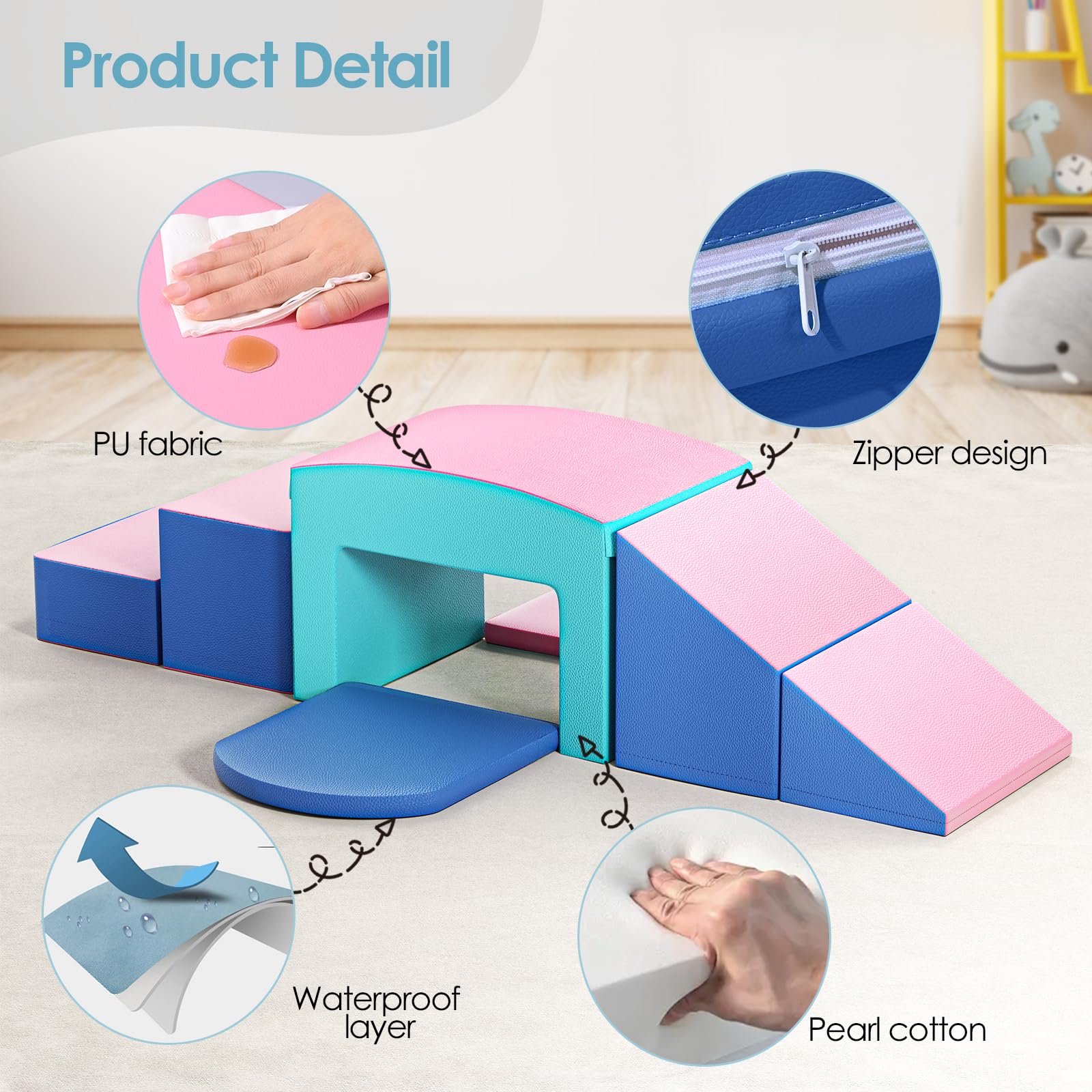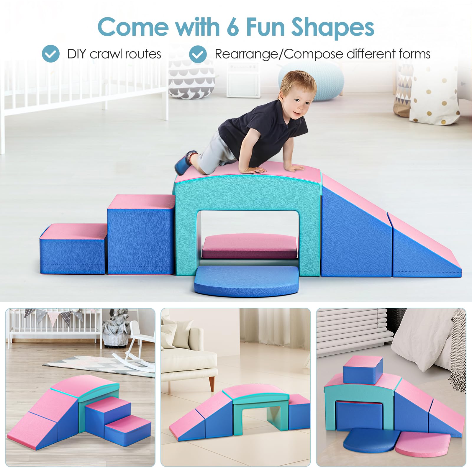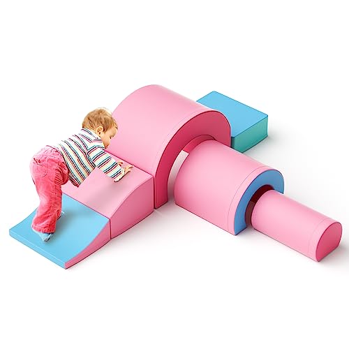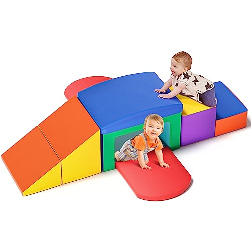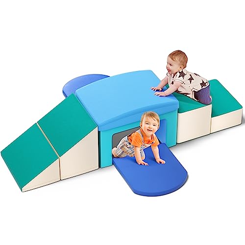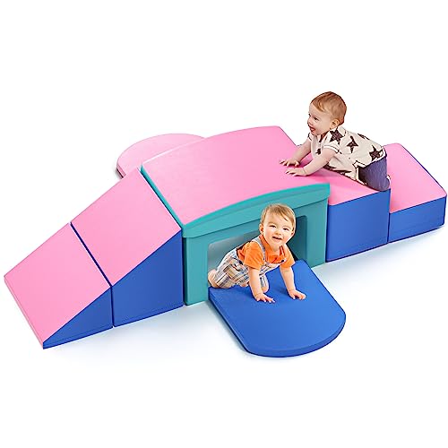 - Versatile Climber: This Climb and Crawl Set including 2 steps, 1 tunnel, 1 ramp and 2 pads. The 6 piece foam climbing blocks can be rearranged and set up in different ways provide endless fun