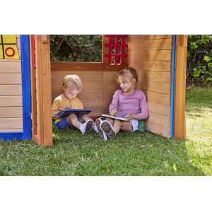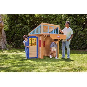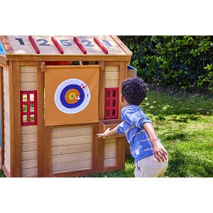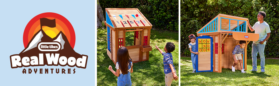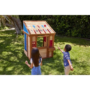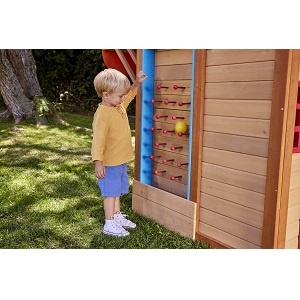 - 5-IN-1 - This sturdy wooden playhouse features different games on every surface!
