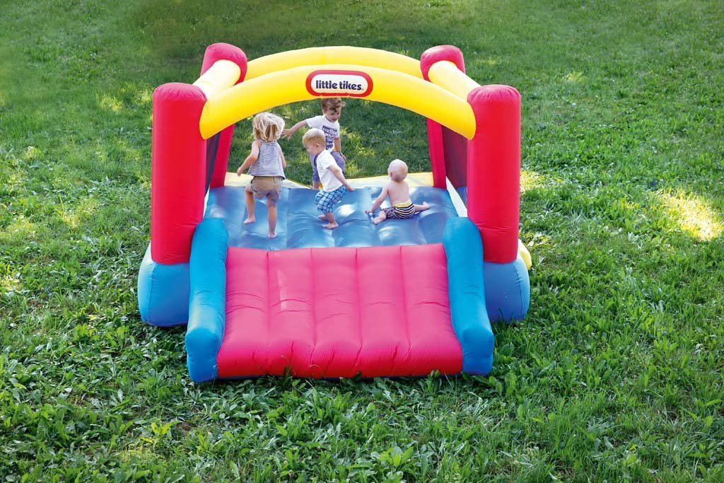 - INFLATE AND DEFLATE IN LESS THAN A MINUTE : The high-pressure blower included can inflate and deflate the Jump N Slide Bouncer in a jiffy. Pack up easily with its own carrying case for easy storage. Little Tikes bring some bounce to your house