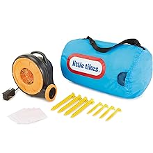 - Stakes anchor the bouncer firmly in place, while a heavy-duty blower provides continuous airflow