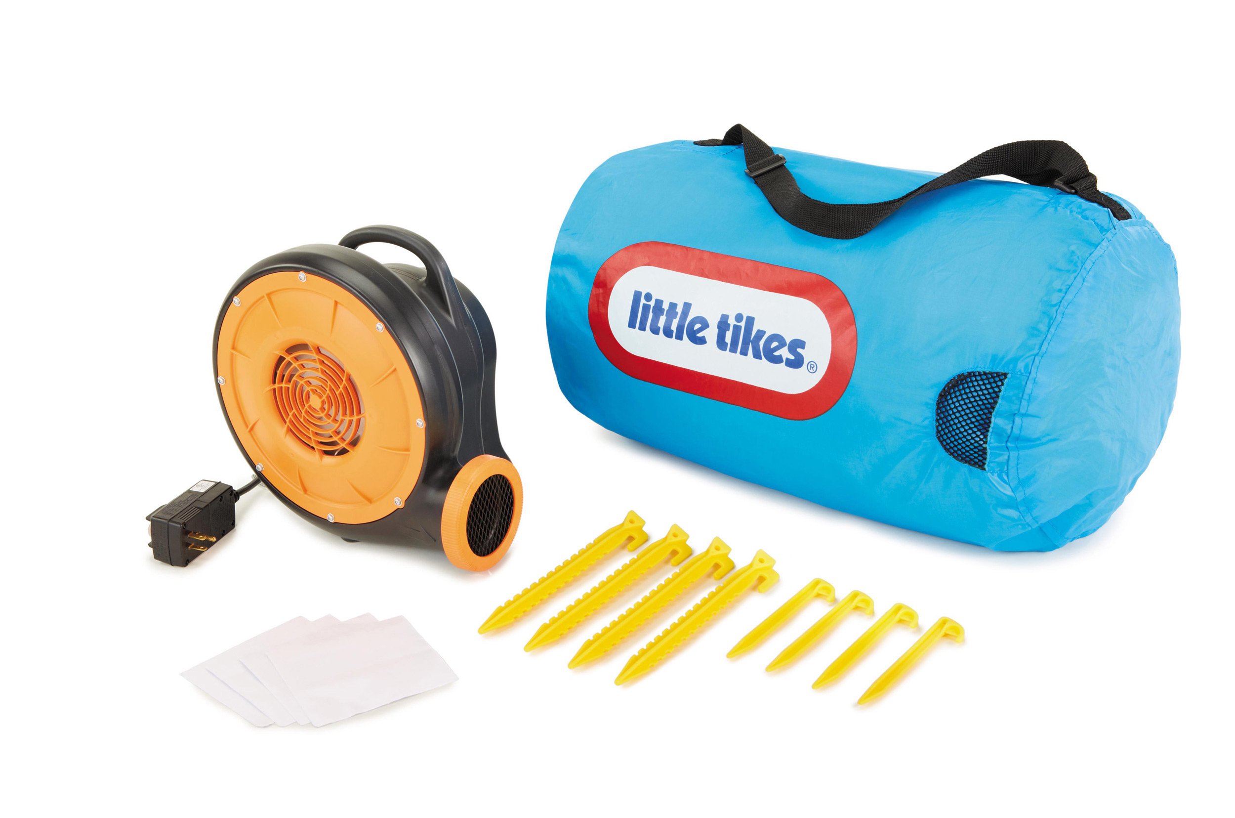 - Stakes anchor the bouncer firmly in place, while a heavy-duty blower provides continuous airflow