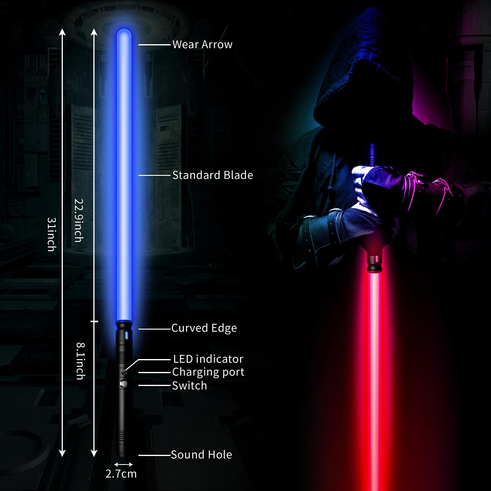 - u3010Holiday Giftu3011: The Lightsaber with 12 colors and 3 sound modes to choose andu00a0can be switched anytime .The Hilt is comfortable and smooth for hand-hold ,made of aviation aluminum alloy, processed by excellent sandblasting