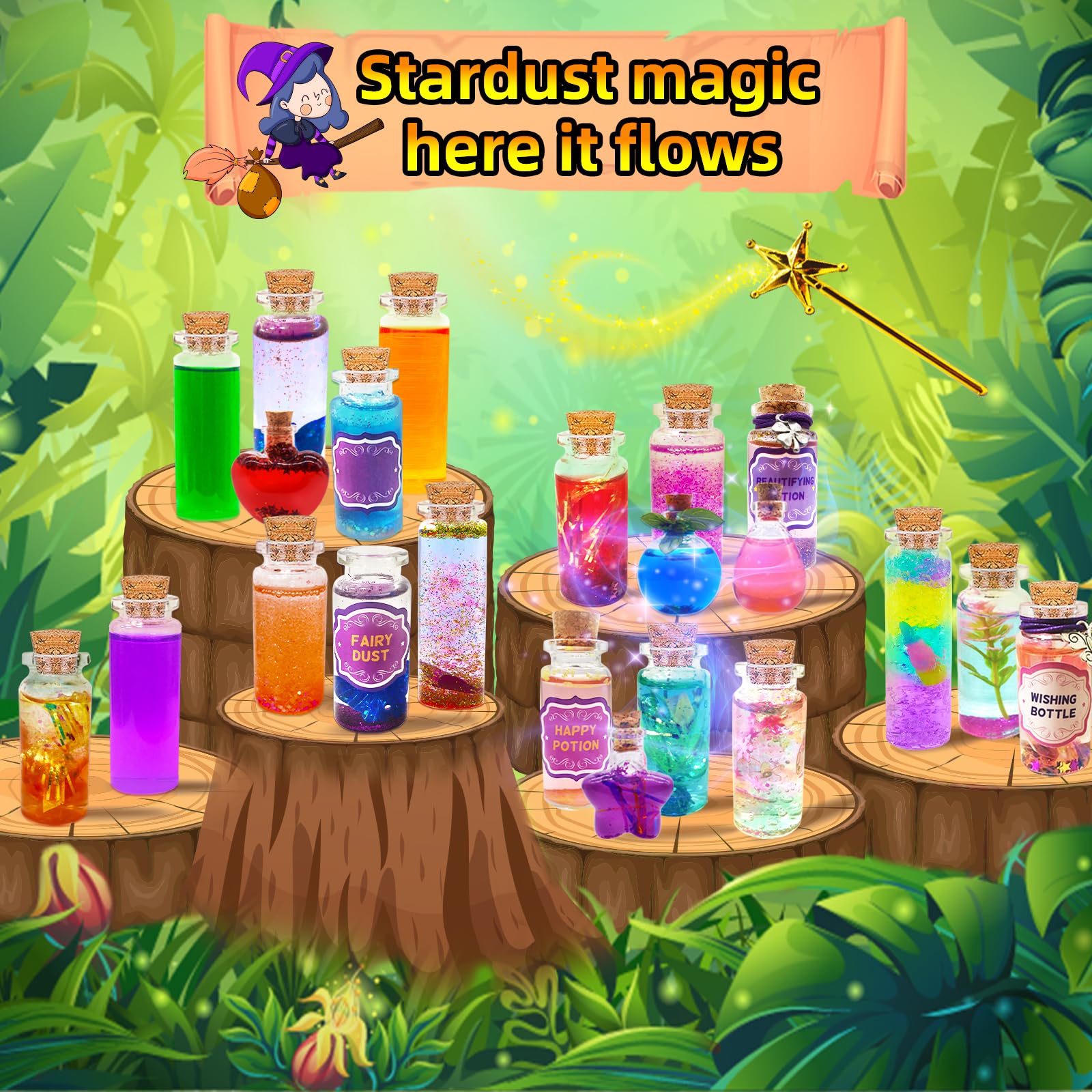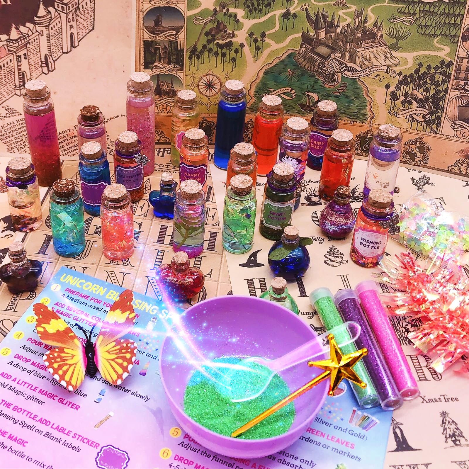 - Magic Potion Kits for Kids: This magic mixies potion craft kit offers endless fun and is perfect for kids ages 6-10+, making 24 different magic potions will provide hours of entertainment for boys and girls. You can also tie a bottle of magic potion with lucky four-leaf clover on a purple string to make a necklace to bring good luck to your child. Parents or grandparents will also find themselves caught up in the magic of mixing their own fairy magic potion!