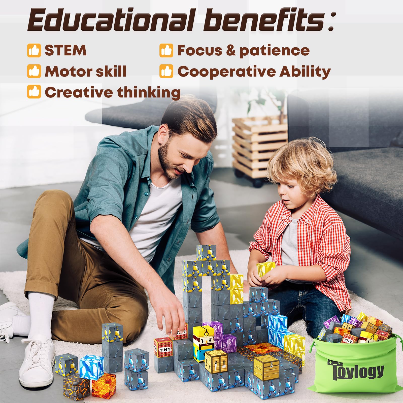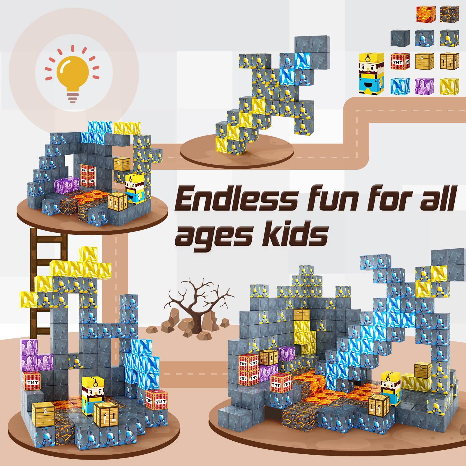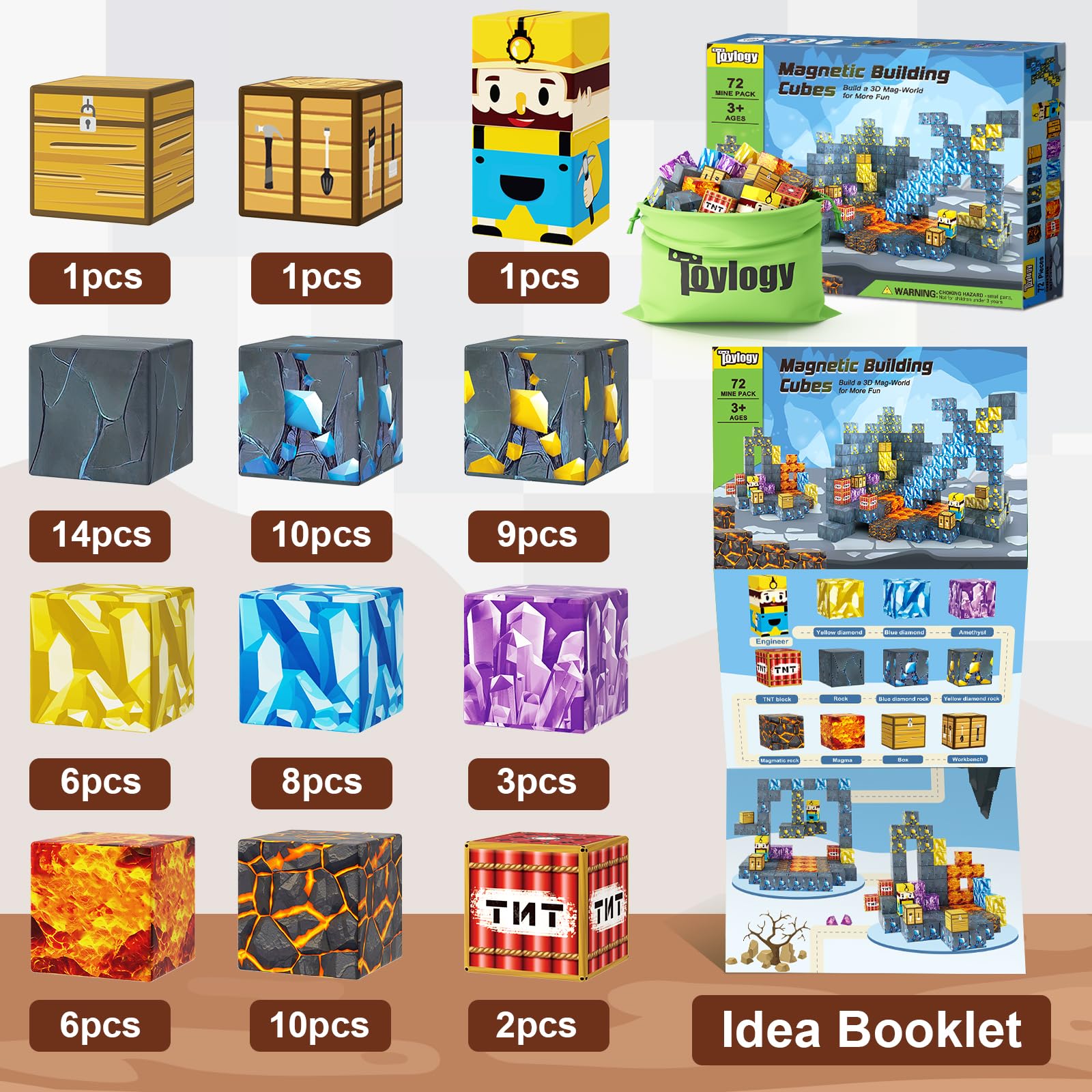 - u3010CONSTRUCT MINE MAGNET WORLD KIDS GAMESu3011Enter the Mine Sword Caverns with this magnetic blocks, where adventure and treasure await! Use kidsu2019 creativity to explore cave war, and challenge kids to see who can conquer it. With endless possibilities and hours of fun from simple to challenging construction. Different from other 6 magnets inferior blocks, Toylogy blocks with 8 magnets, compatible with 1IN blocks in the market, unlock more freedom to build.