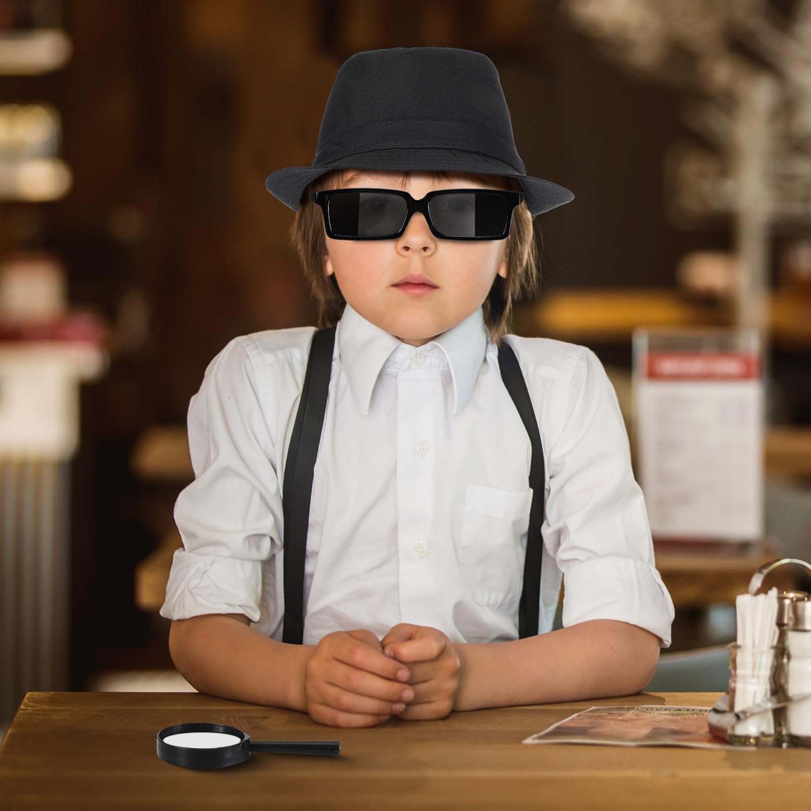 - Package Includes: you will get 4 pairs of rearview glasses, 4 kids' detective hats, and 4 magnifying glasses; This set is ideal for detective role playing games, enough to meet your party decoration needs