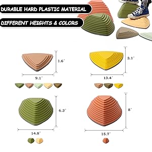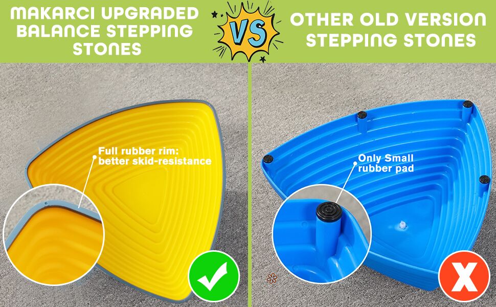 - u300cPerfect Gift for Children or Familyu300d: makarci balance stepping stones are designed to develop kids' balance skills and body coordination with joy. It is an outdoor toy and equipment to promote kids' sensory integration within the daily exercise. And its bright colors can help kids figure out colors. Stackable and lightweight mean kids can arrange and clean up the stepping stones by themselves, saving room and freeing parents' hands.