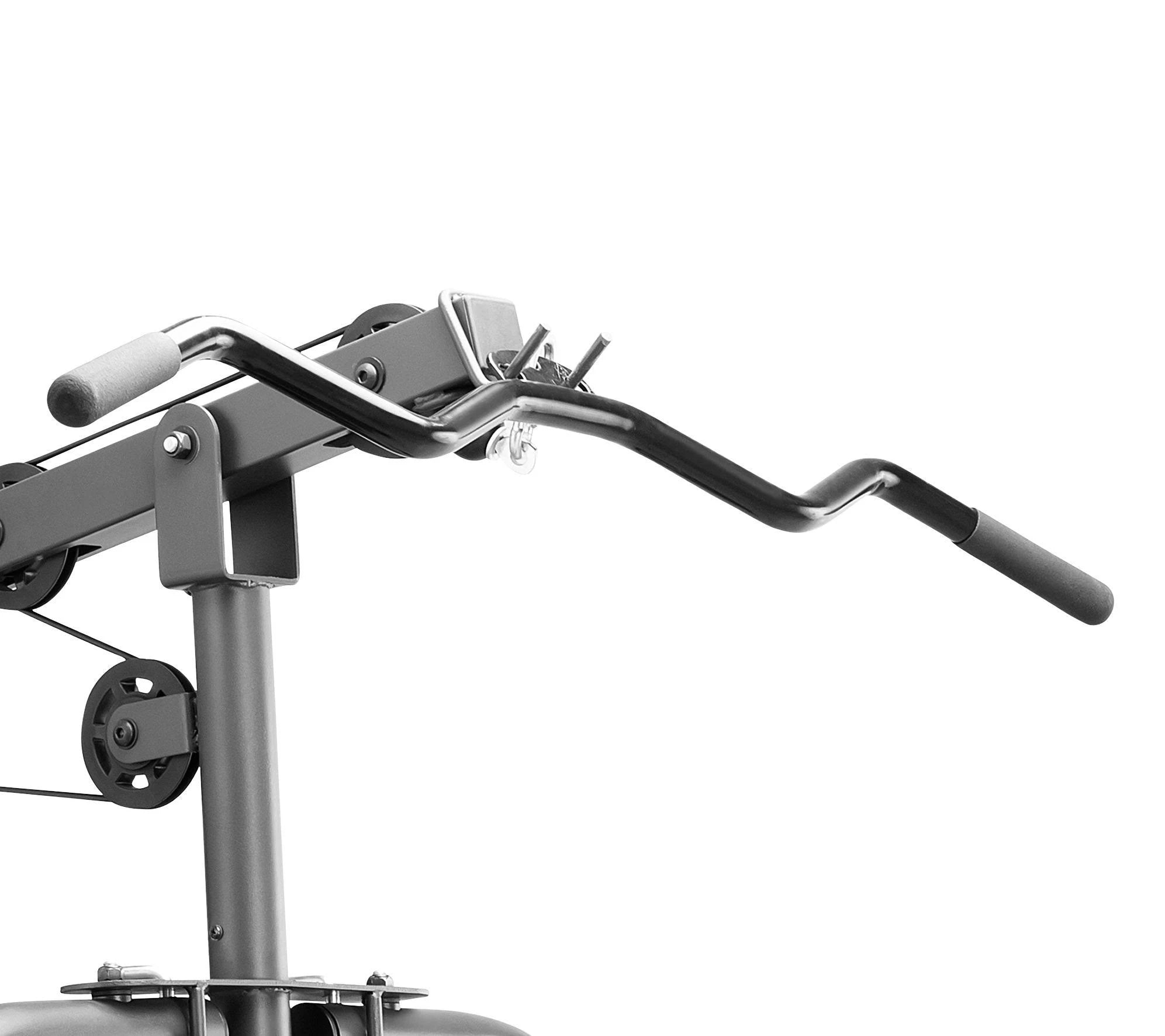 Just like what you're used to in the health club gyms, the MWM-989 Stack Weight Home Gym offers many of the same strength training exercises which target most muscle groups. Burn calories, increase lean muscle mass, and reach your fitness goals while working out at home. Resistance training not only builds lean and powerful muscles, but it also increases your metabolic rate, allowing you to burn more calories and lose unwanted weight. Due to the design of the MWM-989 Stack Home Gym Equipment utilizing pulleys and cables connected to a weight stack, you'll never waste valuable time loading and unloading weight plates. The MWM-989 home training system exercises are safer than traditional free weight exercises because the weights are never suspended over your body. Since the weights are stored behind a protective weight stack, the weight lifted will never be directly above your body. This solid piece of equipment is perfect for any garage home gym due to its compact design. Unlike a Marcy Smith Machine, the Marcy MWM-989 Stack Gym provides full body workouts that target several muscle groups while not taking up a large footprint. Not strong enough to hit the pull up bar yet? Use the included lat bar and upper pulley on the Marcy Stack Home Gym to work out the same muscles, but with a customized weight.