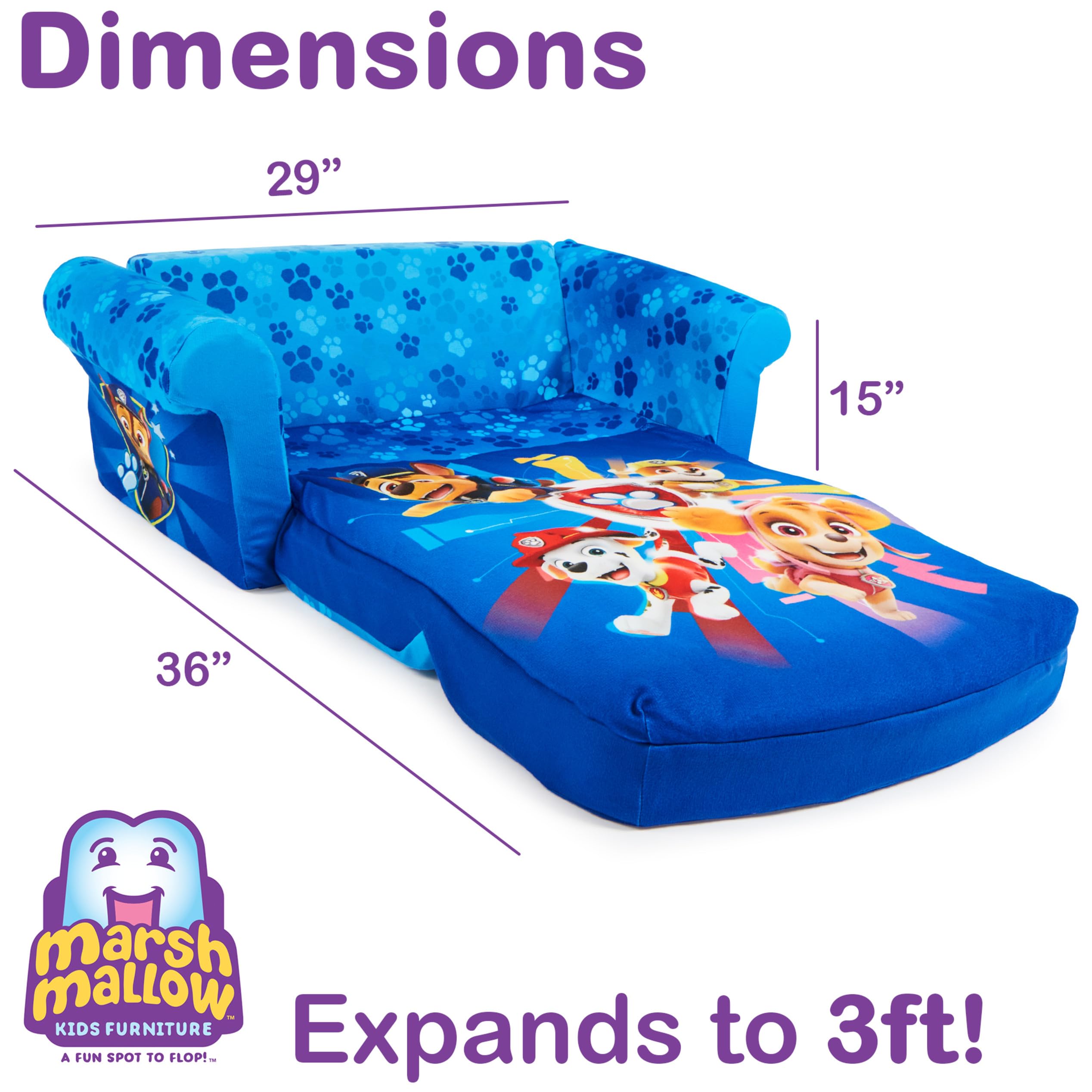 - 3-IN-1 KID CHAIR, TODDLER NAP MAT & LOUNGER: Innovative flip-open construction combines toddler couch, floor lounger & sleep mat for lounging, sitting, & napping. Sofa dimensions: 15"h, 29"w, and 16u201dd. Flips open to a 3ft floor bed.
