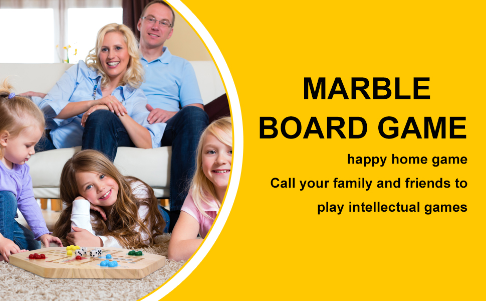 - u3010Classic Weighted Gameu3011Our material is selected from high-quality wood. Marble Board Game is a double-sided painted design, suitable for 4 or 6 players, 24 colored marbles (4 of each 6 colors), 6 dice, velvet drawstring pouch for marbles and dice, complete with detailed instruction manual, 20" x 17.3" x 0.8", easy to carry