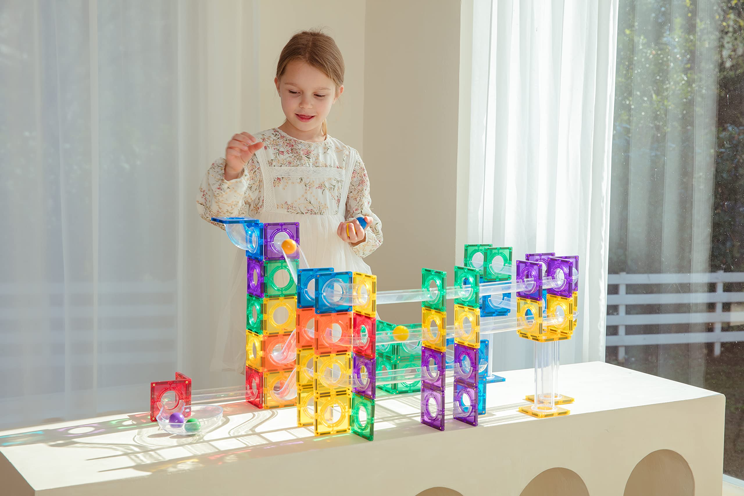 - u2728u3010120 PCS Marble Run SETu3011Unleash endless creativity with our stunning translucent magnetic tiles marble run u2013 designed for seamless compatibility with leading brands.