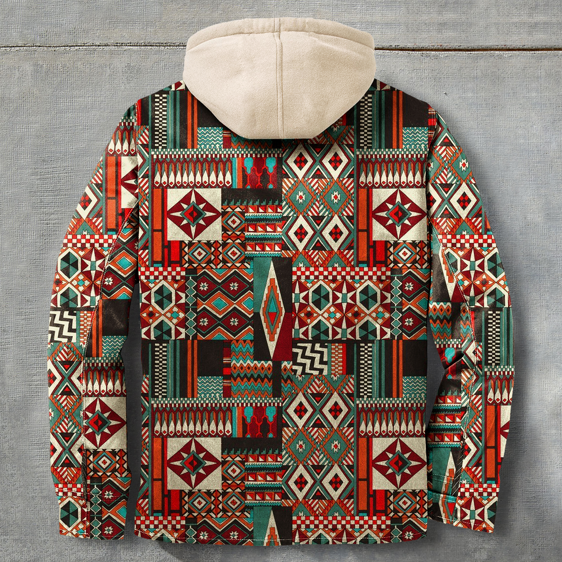 Men's Autumn & Winter Outdoor Casual Vintage Ethnic Print Hooded Jacket