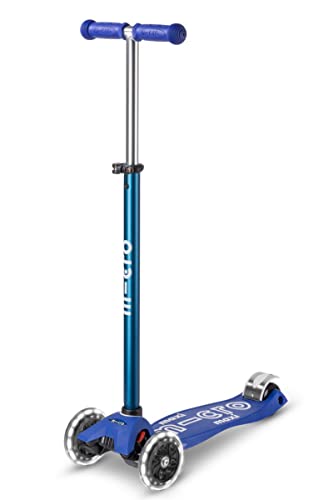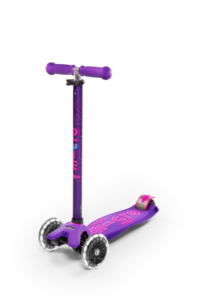 - Micro's 3-wheeled Maxi Deluxe LED scooter, with a lean-to-steer design, offers a stable ride that supports children as they curve and carve the sidewalk.. Features two front LED motion-activated light-up wheels. (No batteries required!)
