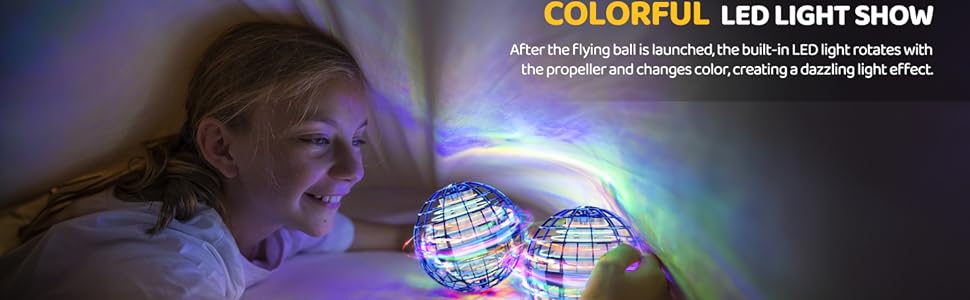 • High-Tech Hand Controlled Drone with Cool RGB Light: The flying orb toy provides intelligent flight. Different throwing angles and speeds will create different flight lines and boomerang effect.You can use your ingenuity to create your unique way of playing.The colorful led at night will make your magic ball cooler