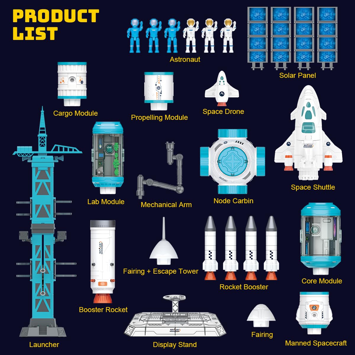- [Realistic Restoration the Launcher Scene]the ground launch base of this space toy is made up of diy rockets and launchers, simulating the launch of rocket scenes and allowing children to explore freely. Variety of styles of space station can be formed by assembling different components, which can help to stimulate children's imagination and creativity.