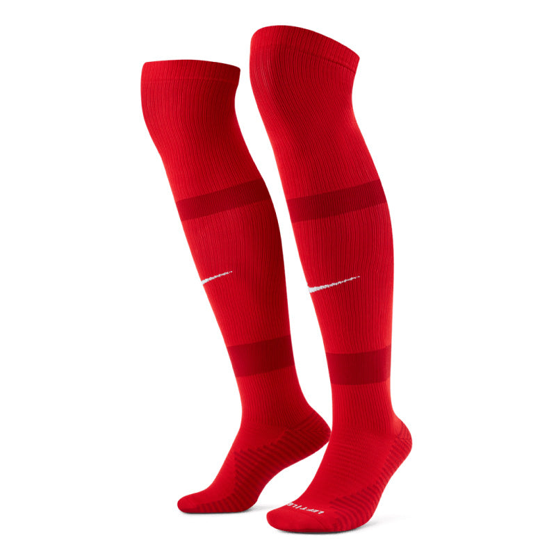 The Nike Matchfit Knee High Team 20 Soccer Sock was developed to keep you comfortable. Sweat-wicking material helps keep feet dry, while a snug band and additional cushioning provide support all match long.