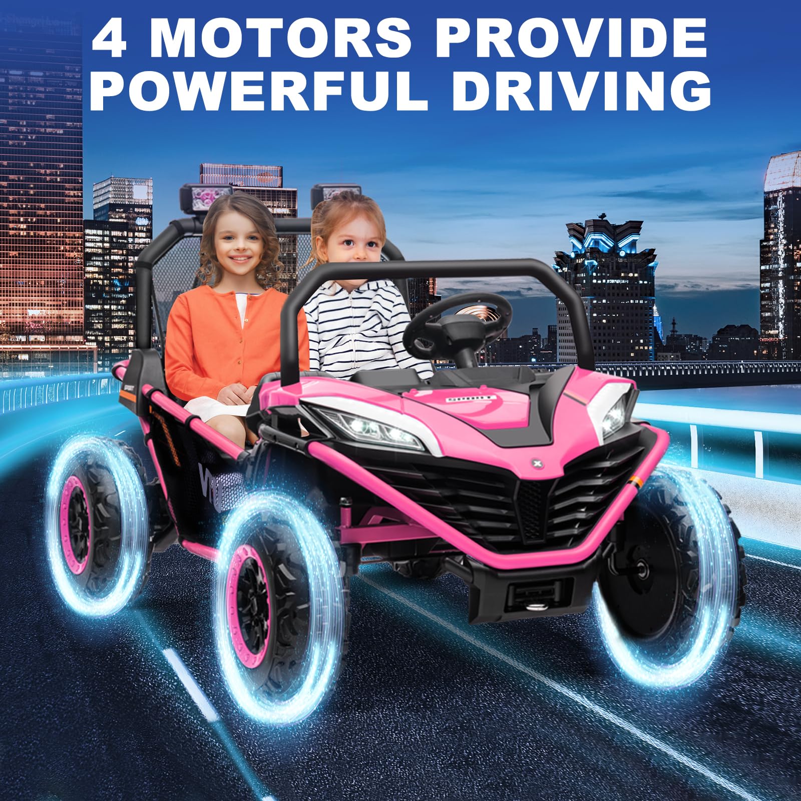 - 24V 4WD Electric Car: This ride on car features a full 24volt battery enough powerful to support run 1-2 hours in full charged (Depends on children's weight and road surface and so on) , 4X80W powerful motors which can provide stronger and more stable power to the car, ensure an optimal performance and let your children feel the joy of driving!