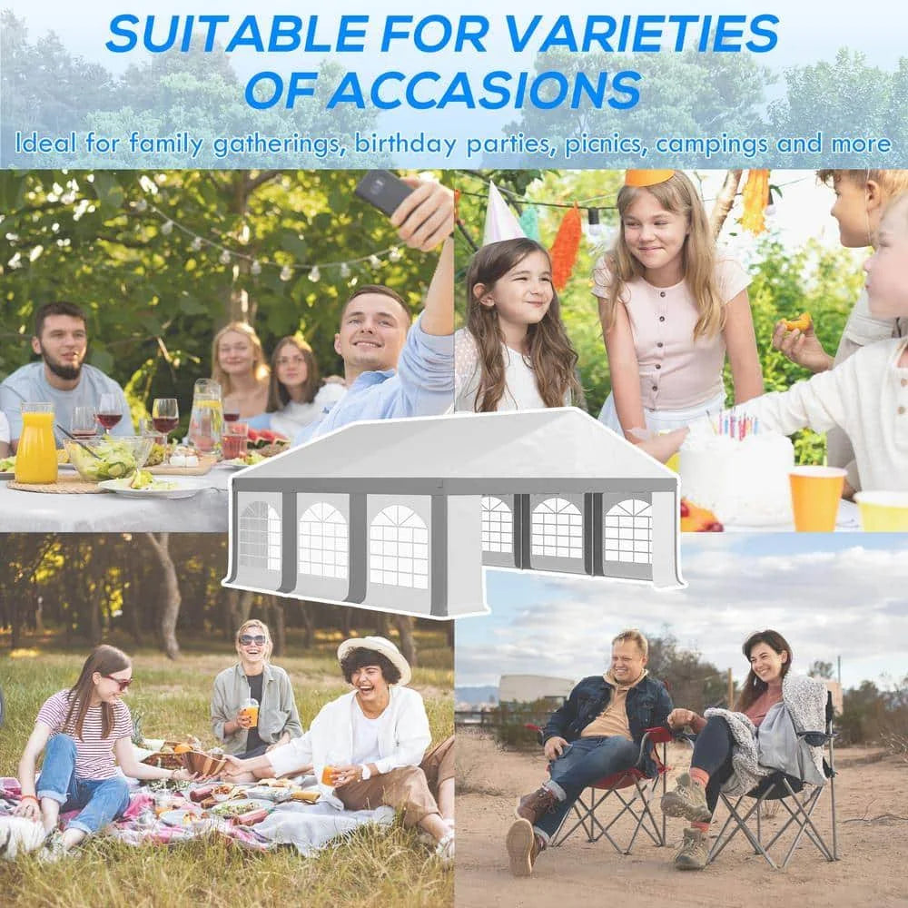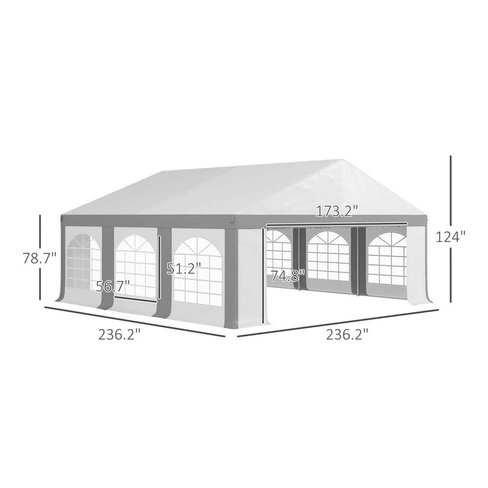 Outsunny 20' x 20' Heavy-Duty Large Wedding Tent with Sidewalls, Gray