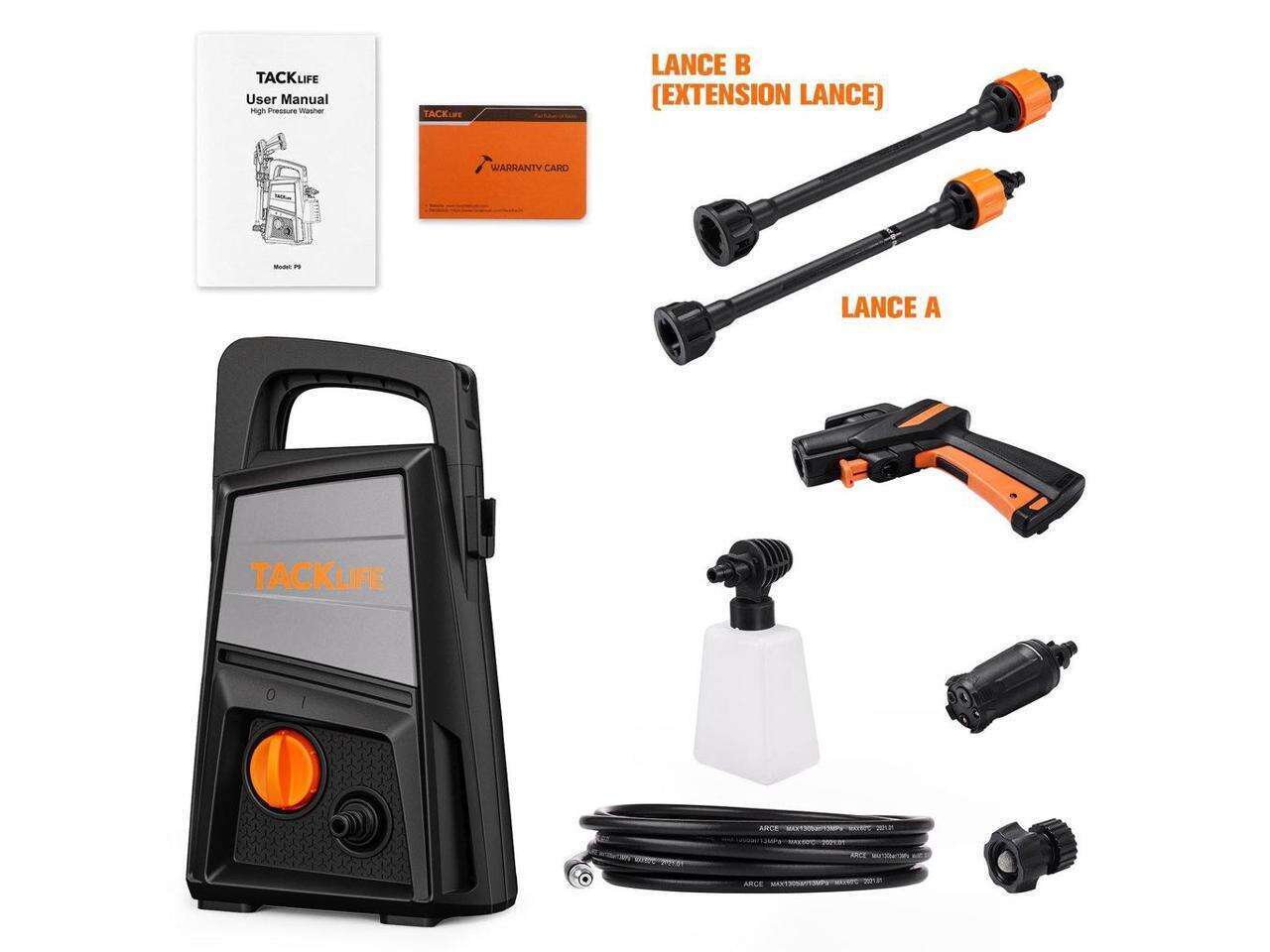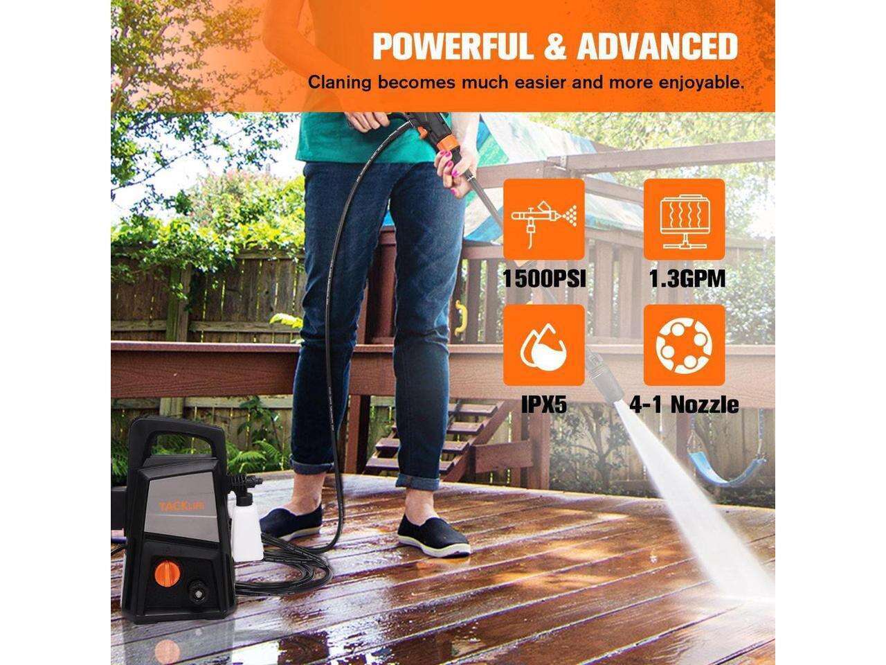 • P9 Electric Pressure Washer, 1500 PSI at 1.3 GPM (Max), 4 in 1 Nozzle