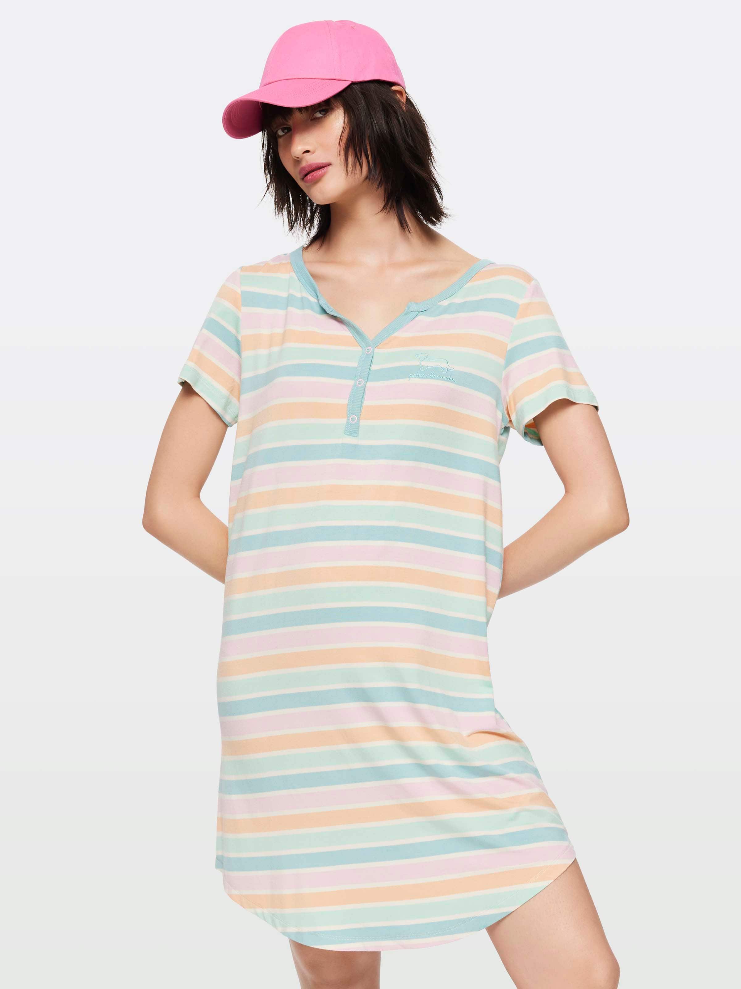 Pretty pastel stripes make for perfect PJs this summer. This sweet nightie features all-over colourful patterns with a henley neckline, complete with our iconic PA logo.
