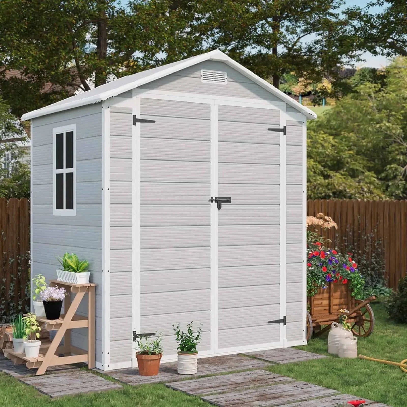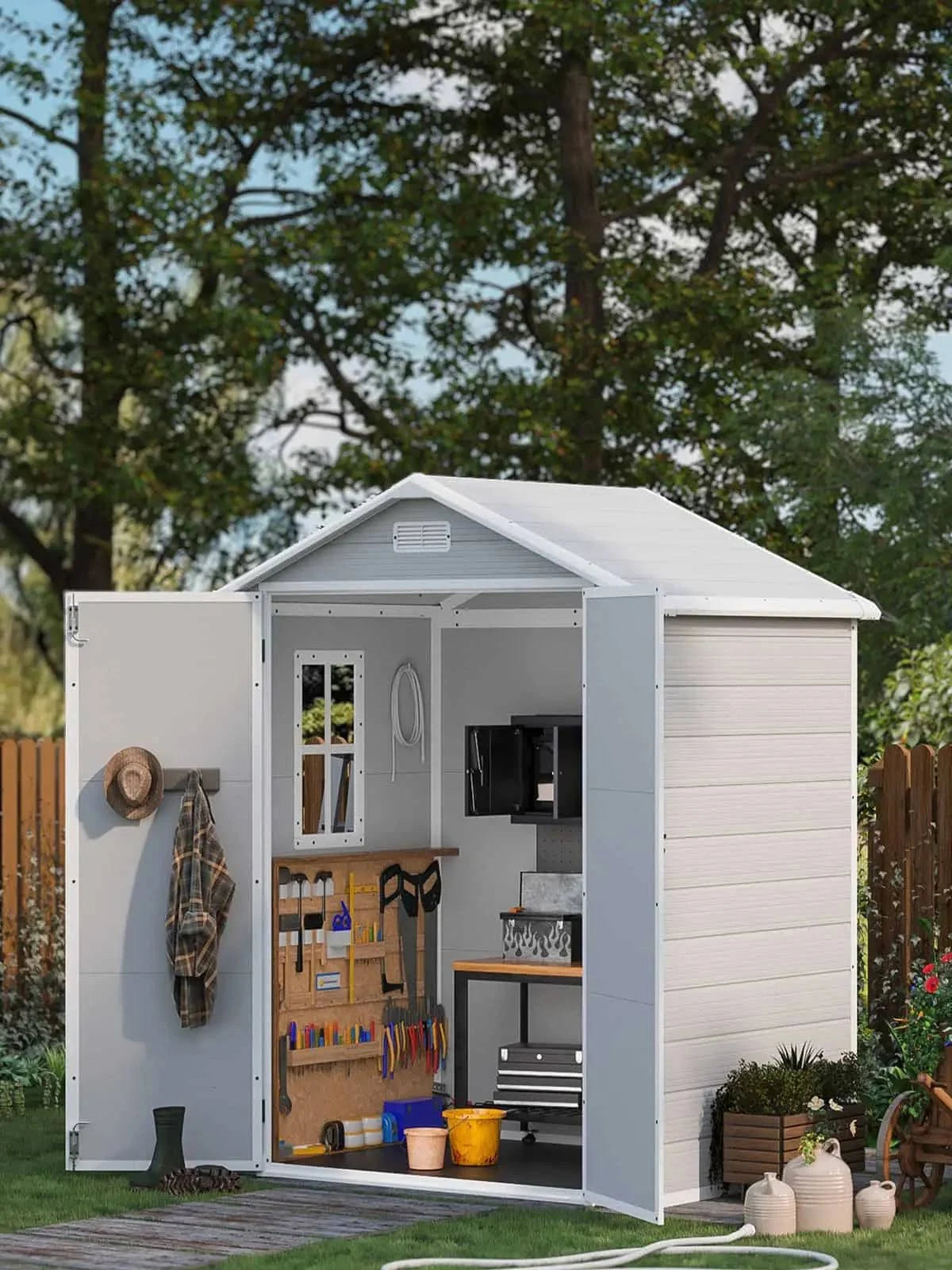 A good storage shed is one that can prevent rain/ snow from getting wet on rainy/ snowy days, and one that can provide shade on hot summer days. Here Patiowell All-weather Brown Metal Shed is your best choice. Made of premium metal material, Patiowell storage shed is designed to offer a long lasting and durable space to keep your garden tools and outdoor equipment from the outside elements. The 6*4 FT size brings a storage capacity of 125 cu.ft, ensuring that every family that uses it will be able to store tools they want inside.