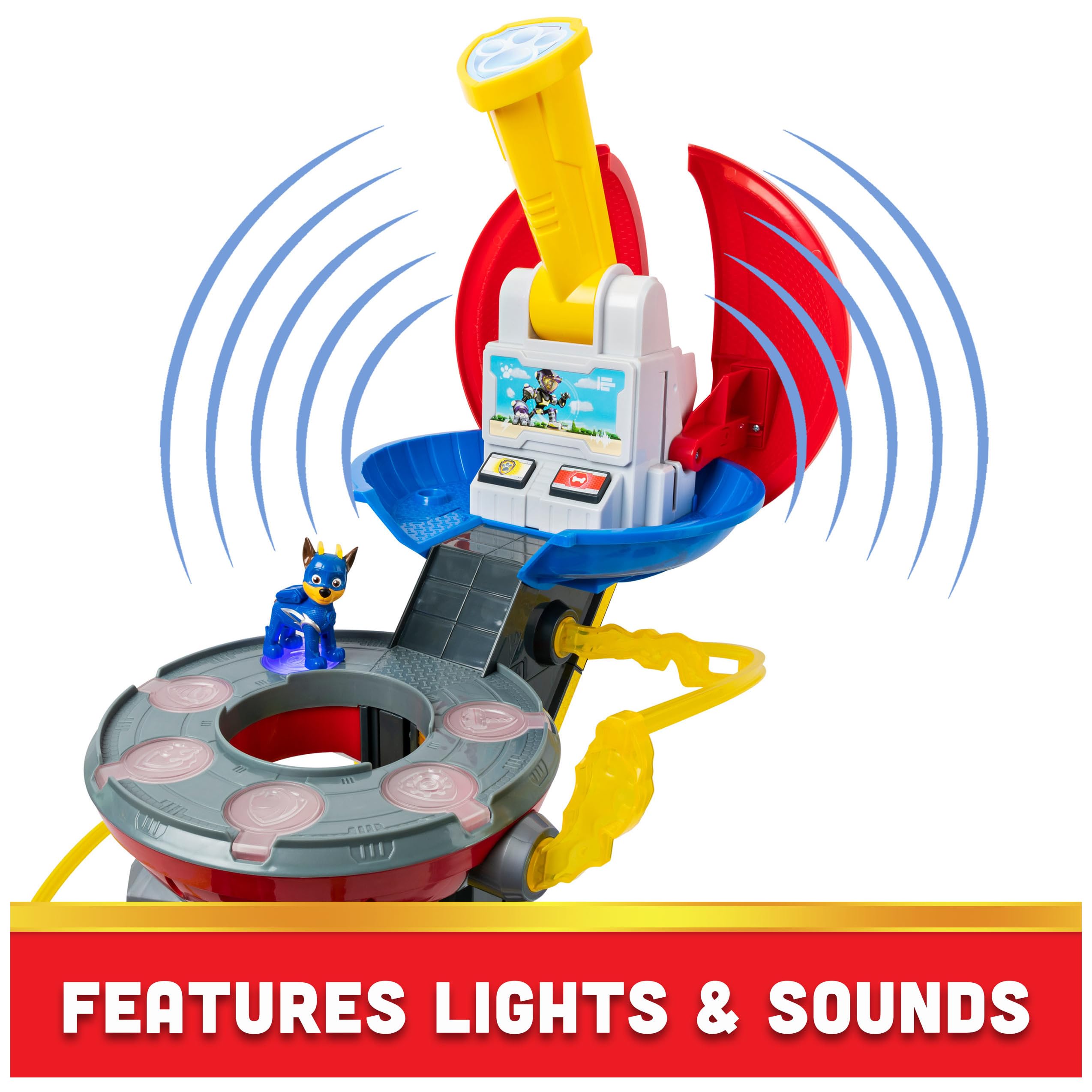 - 4 BONUS PUP ACTION FIGURES: Place Chase, Marshall, Rubble and Skye on their lit-up spots on the platform, press the button to hear the mission and the lights blink, landing on the right pup for the job!