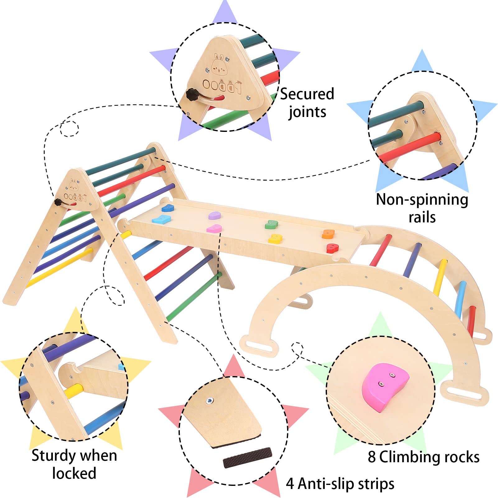 - SAFE & DURABLE- This pickler-3 piece climbing gym is made from 100% natural, BPA-free, non-toxic and odourless eco-wood, making it safe and durable for your little ones.