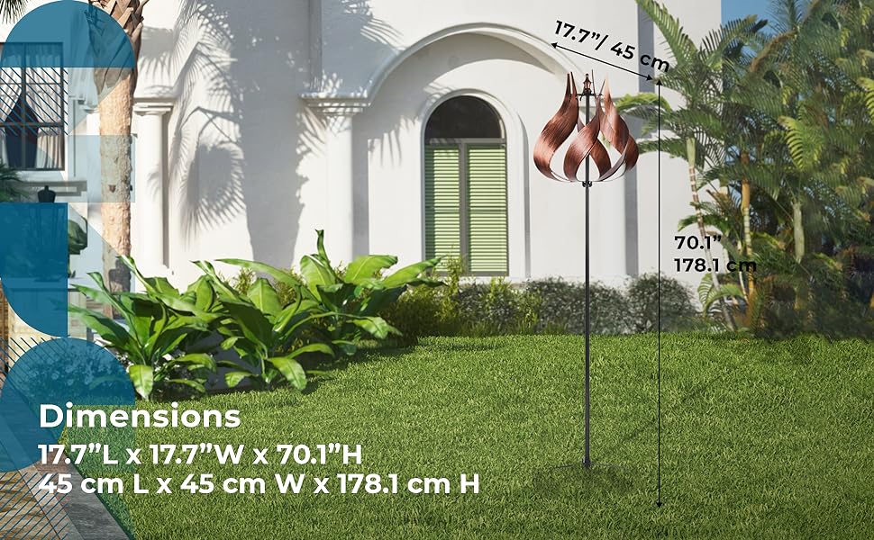 • SPINS BY WIND: Watch in awe when the wind powers the movement of the windmill resulting in a beautiful garden display
