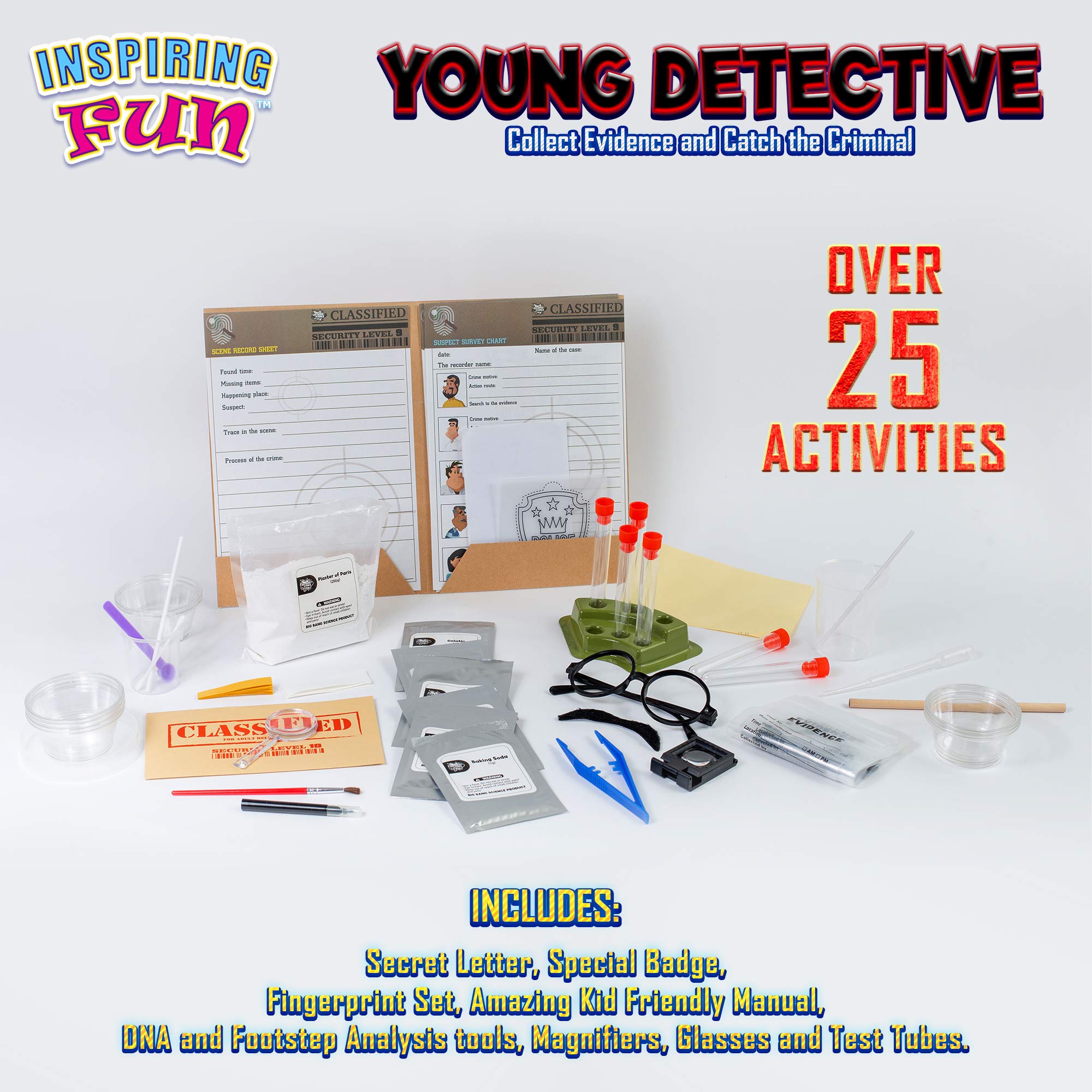 - BECOME A DETECTIVE AT HOME -- Match fingerprints, test DNA, identify fibers, test water for poisons, cast footprints and discover secret messages! Set the scene with the included crime scene tape!