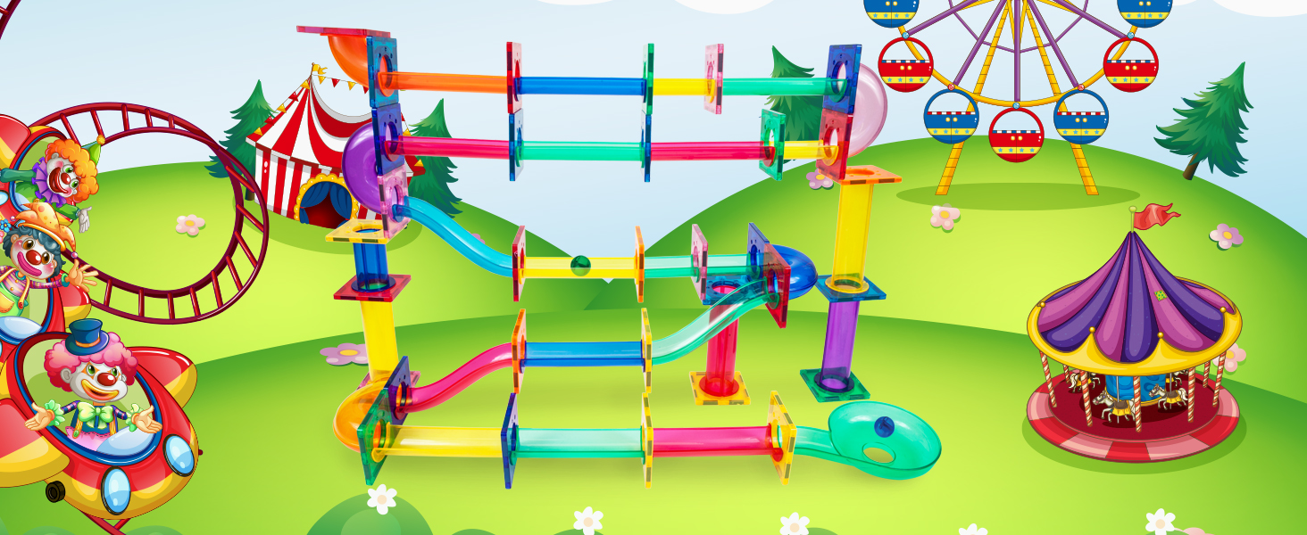 - OPEN ENDED POSSIBILITIES - Contains 120pcs of vibrant, colorful, and translucent magnetic piece building blocks and tiles that connect together intuitively to allow frustration-free play time, hand-eye coordination, motor skill training, and child brain development. Equipped with 10 different geometric shapes, including columns, slopes, slides, funnels, U-turns and steel-weighted marbles, the 3-D race track allows multi-layer designs that enable children to stimulate the imaginations