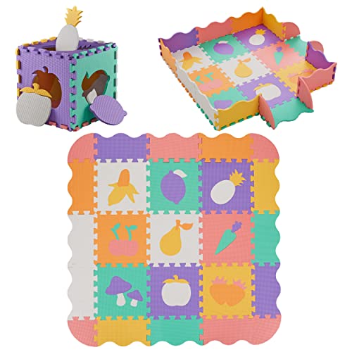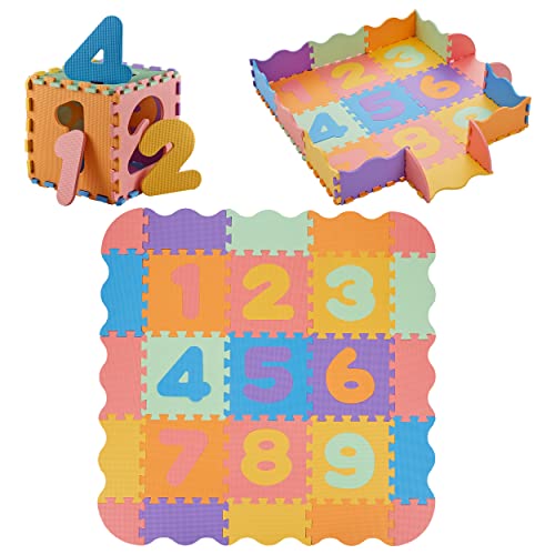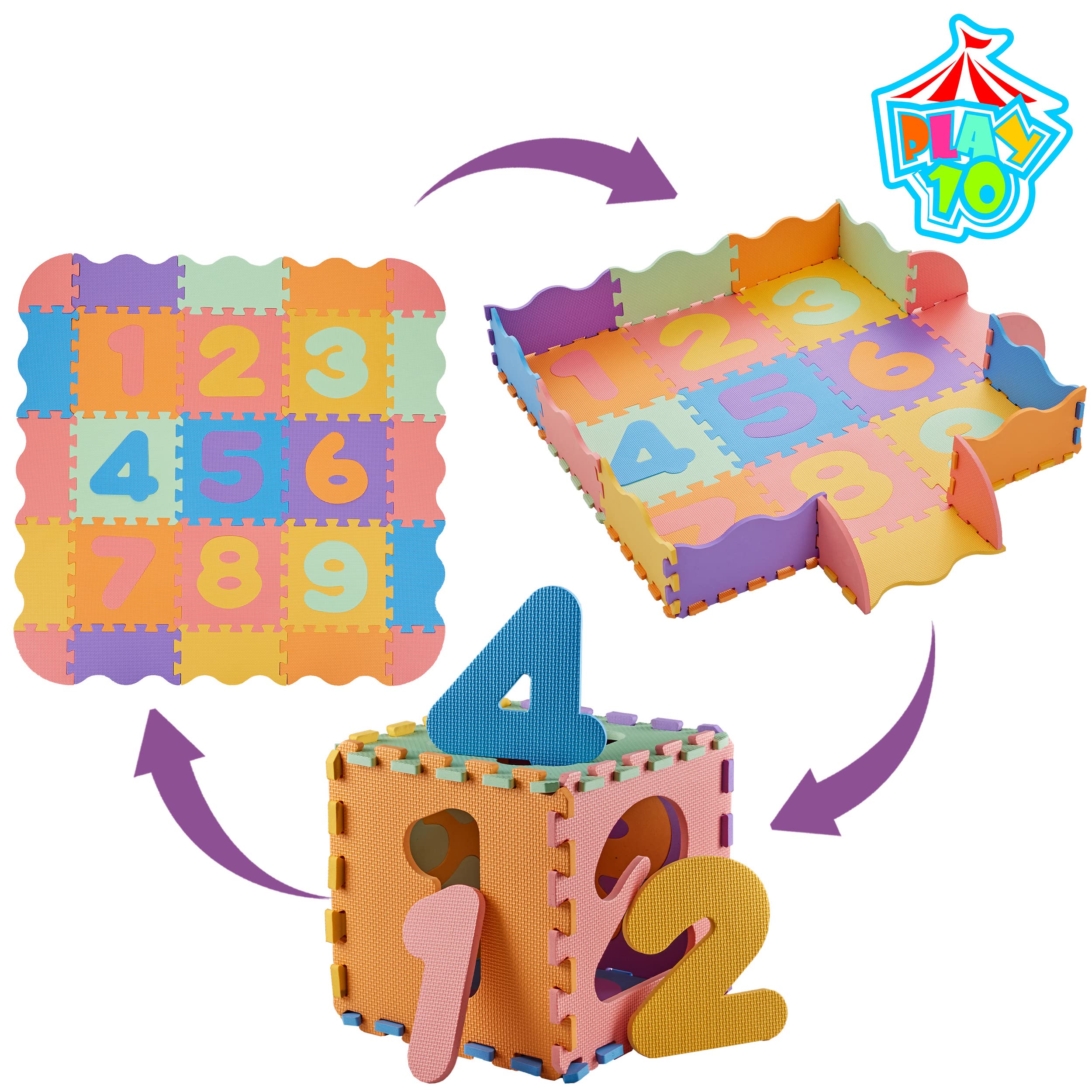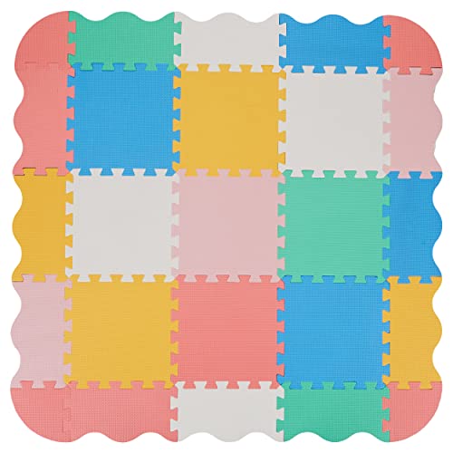 - Fun and Interlocking Foam Mats-This childrenu2019s play mat has 25 piecesuff0cincluding 9 Play Mat Tiles, 12 Fence Tiles and 4 Gate Tiles.The size when tiled is 45x 45 inch.The length and width of each foam is 11.8x11.8 inch and 0.39 inch thick.With its multiple style options, You can choose the style that best suits you.This play mat is a versatile choice for creating a fun and safe play area for your little angel.
