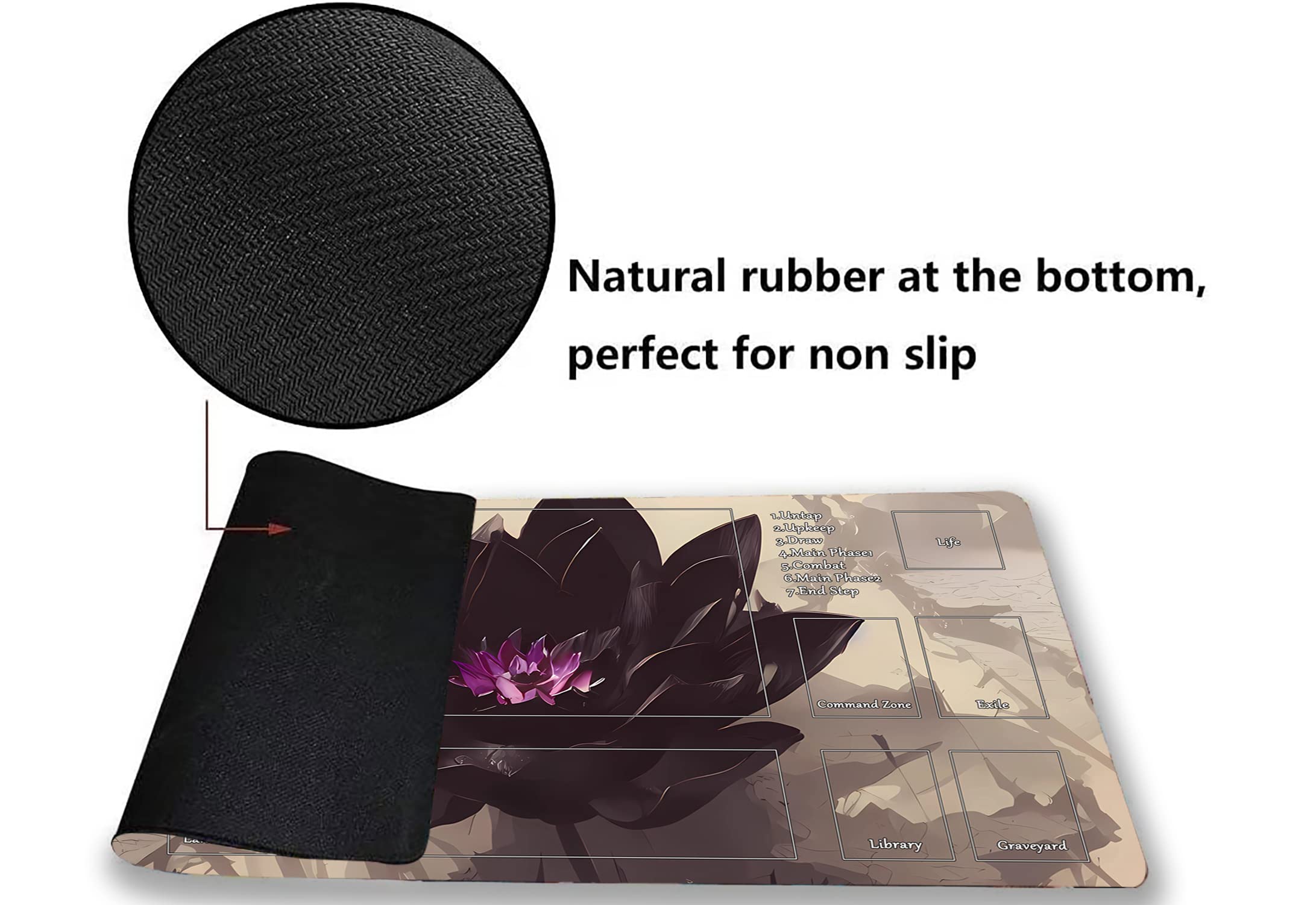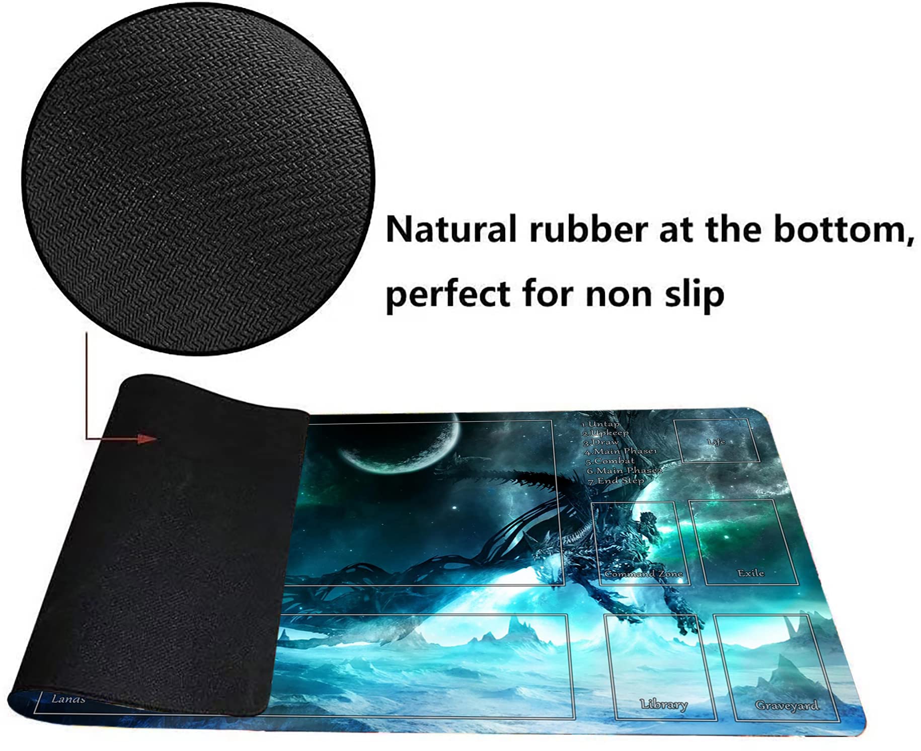 - u3010DURABLE MATERIALu3011MTG playmat made of 24inchs* 14inchs high quality rubber and non-slip rubber bottom. The gaming playmat has anti-fray edges that stand up to wear and tear