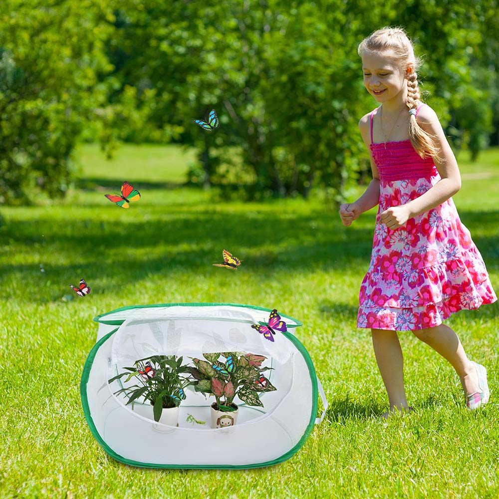 - Special Design: Clear vinyl window panel allows you to see the insect's activities clearer. Butterfly habitat is portable, you can take them outside conveniently. Besides, Collapsible design is good for you carry and storage