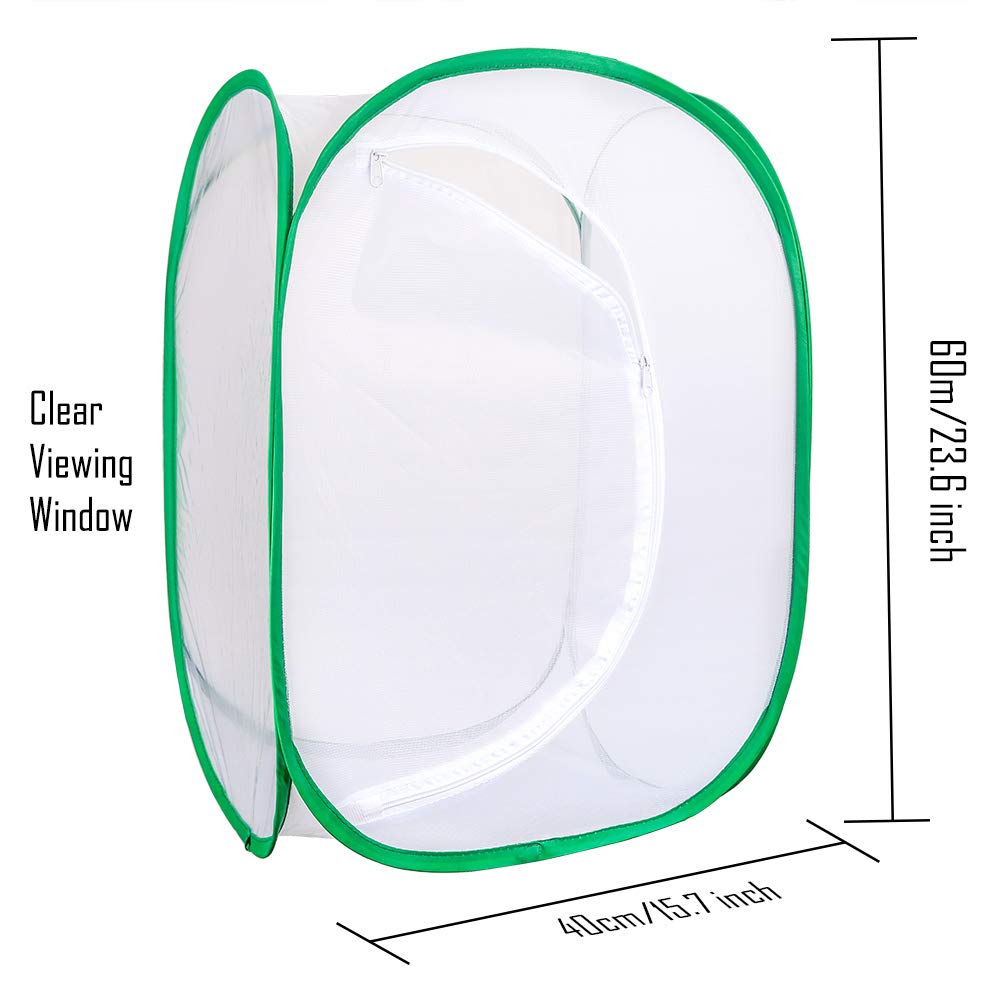 - Package Included: Come with an instructions, two different sizes butterfly habitats. One is 12 x 12 x 12 inch(30 x 30 x 30cm), another is 15.7 x 15.7 x 23.6inch(40 x 40 x 60 cm). Packaged with two clear PVC film, perfect set for you raising insect or outdoor activities. The mesh holes is about 1/50"uff0ceven tiny insects can't penetrate it to get inside