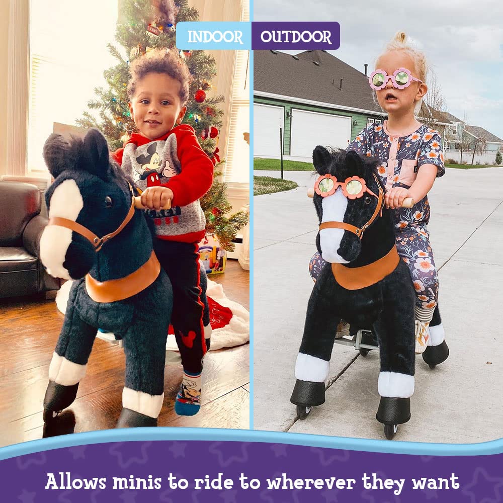 - Updated Wheels - PonyCycle ride on horsey is updated for smoother. Larger contact area makes more stable use.