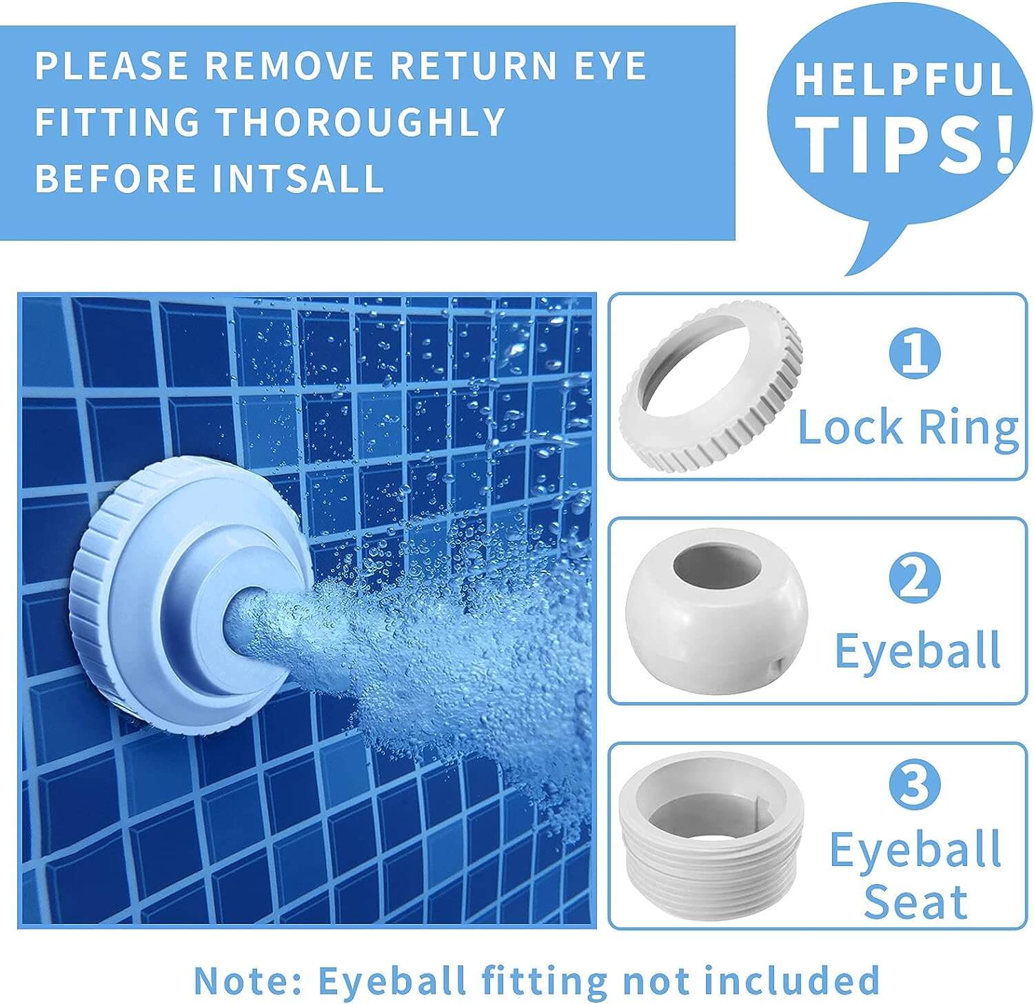 Simple additional adapter design compatible with most 1 ½" Inground Pool return jet and 1 ½" / 1 ¼" Above Ground Pool inlet/outlet fittings.