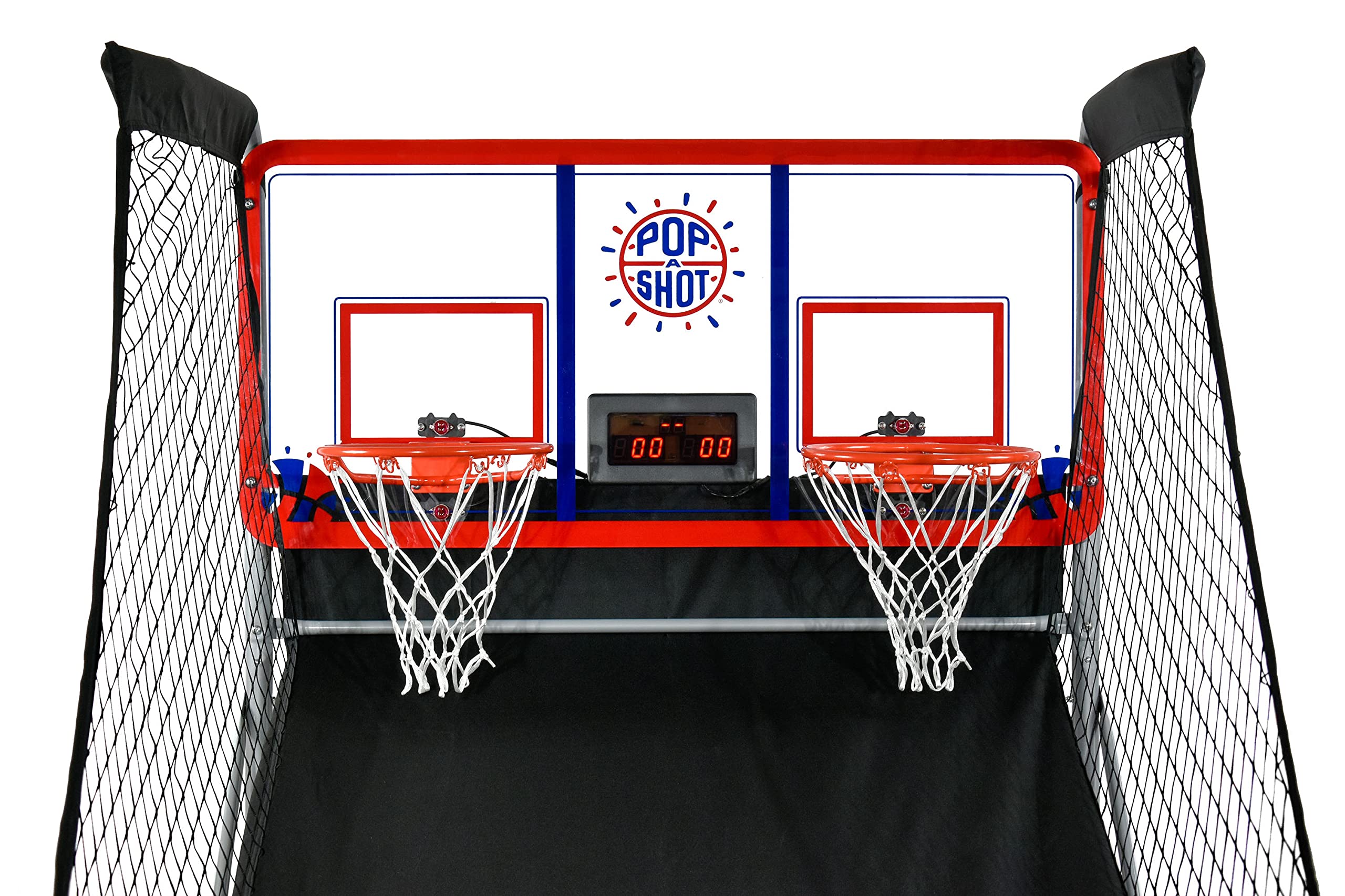 - We've been perfecting the game experience since 1981. Score tracking is nearly 100% accurate thanks to paddle scorers. 7 basketballs. 16 different game modes. A large, 3 digit scoreboard, 6 audio options, AA-battery powered, and the best announcer your side of the Mississippi.
