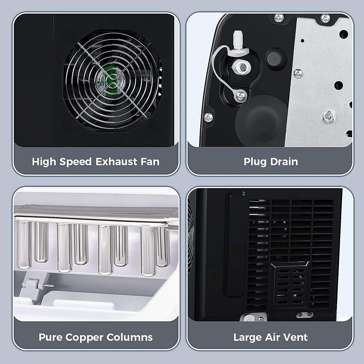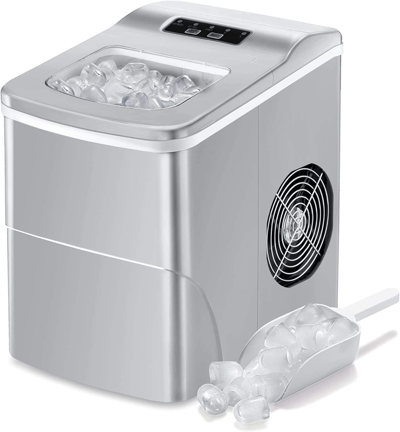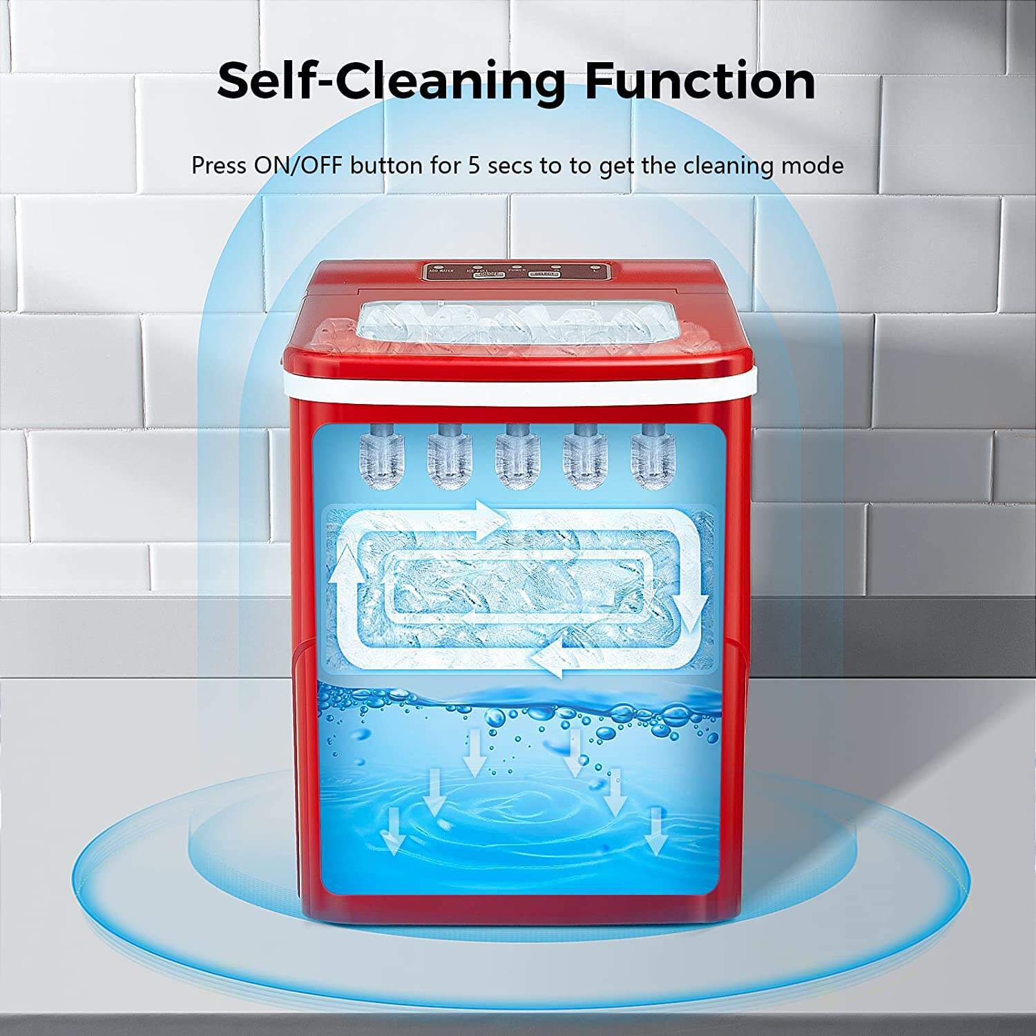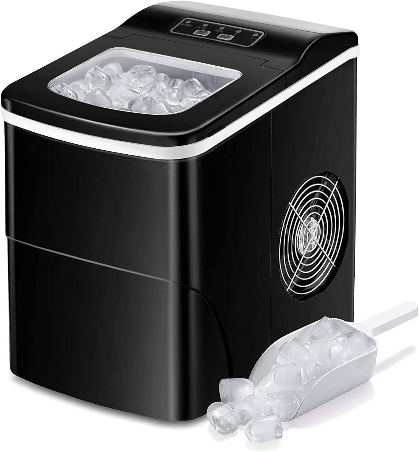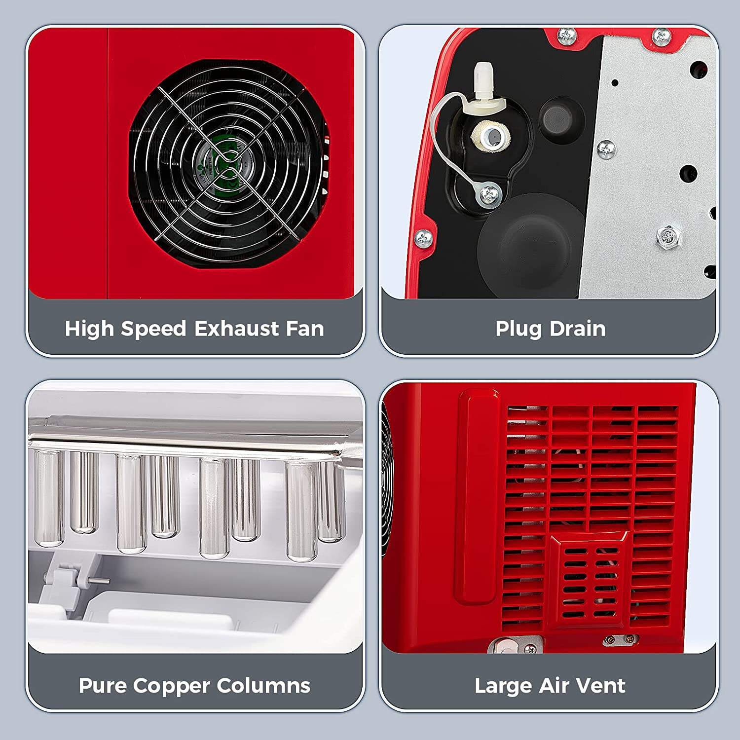 - Multiple Functions with Ice Scoop and Basket: Indicators of our ice machine maker countertop will remind you to take out the ice cubes when the basket is full and inform you to add the water when the ice maker lacks of water.