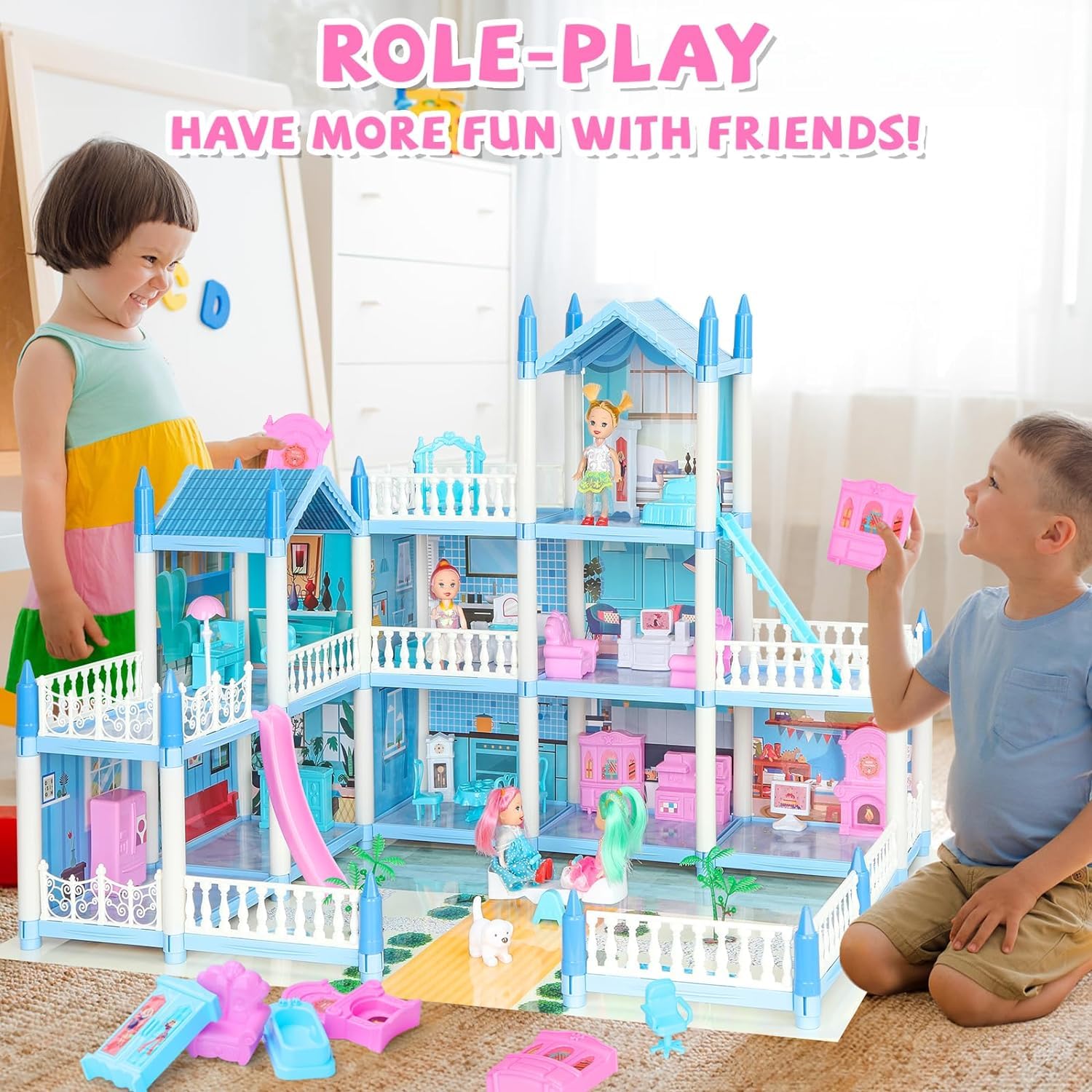 - u3010Sturdy & Durableu3011 - This dream house is made of safe material withu00a0smooth edges without burrs. Sturdy and stable structure, not easy to fall off.u00a0u00a0This toddler doll houseu00a0is theu00a0perfect toysu00a0to accompanyu00a0kids girls & boys aged 3+ withu00a0theiru00a0whole childhood.