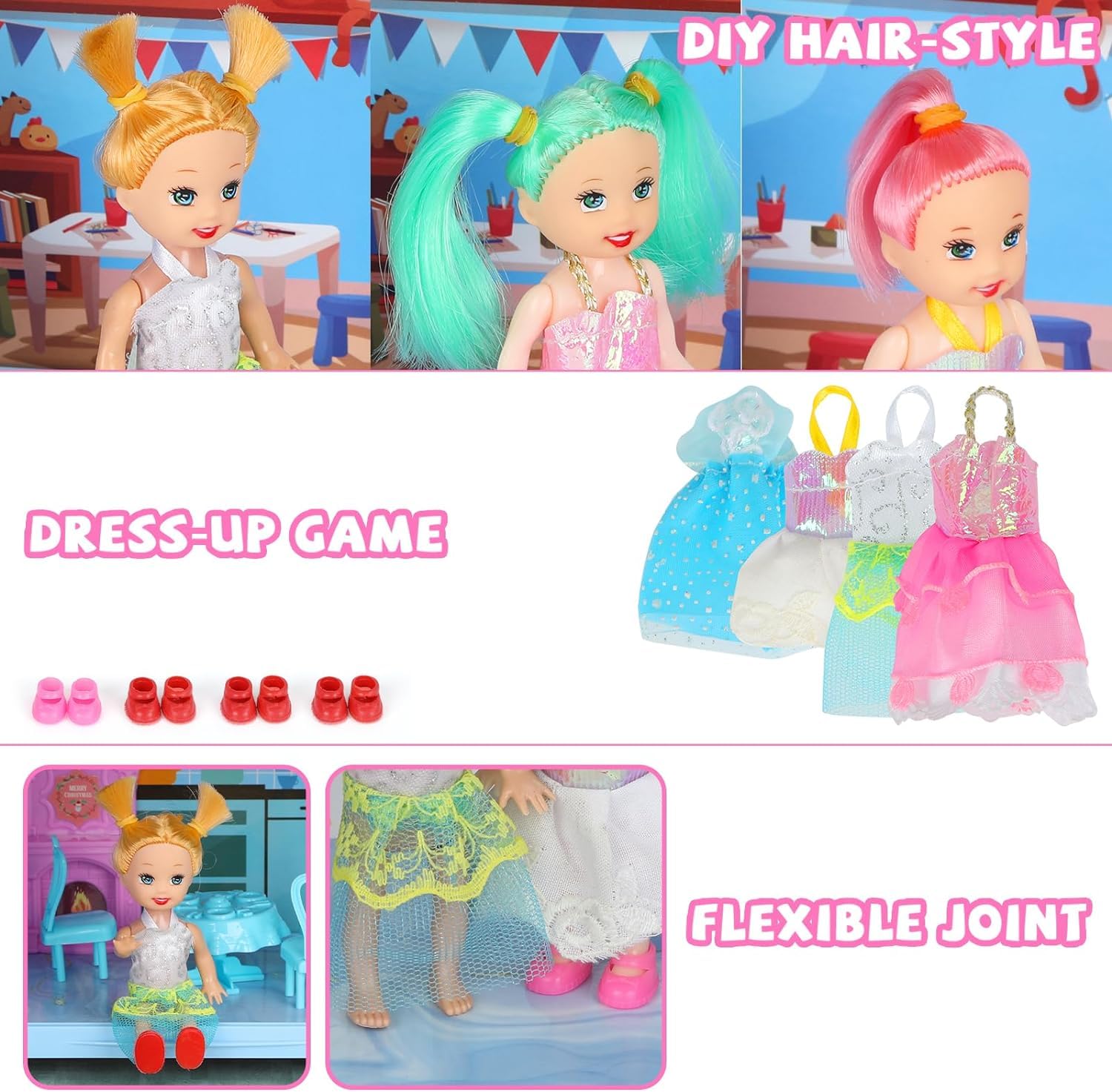 Princess Dollhouse Furniture Accessories 3 Dolls