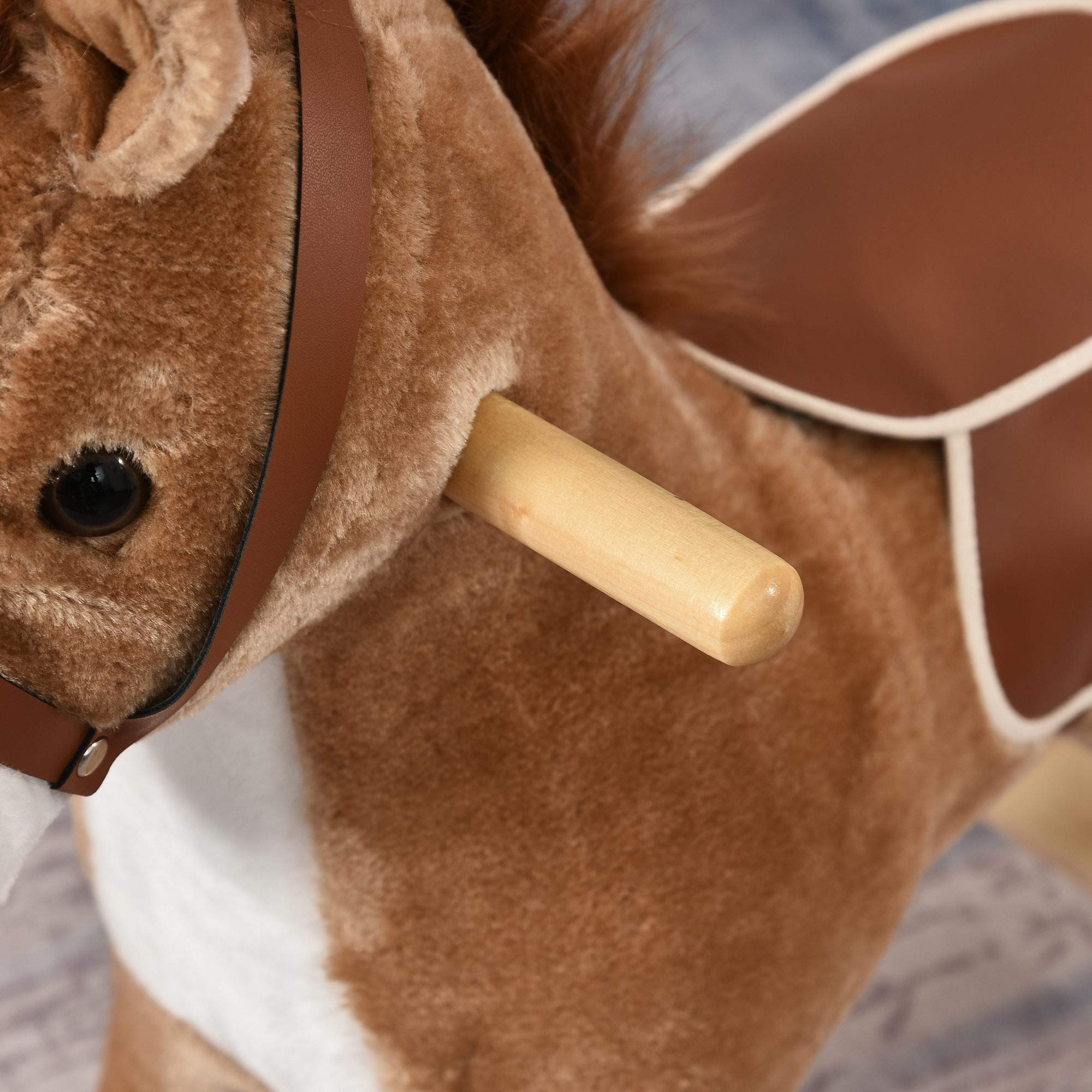 - Plush Body: Our toy is soft, making it cozy and safer. It will be easy for your kid to make friends with a wooden rocking horse with such a friendly fuzzy design.