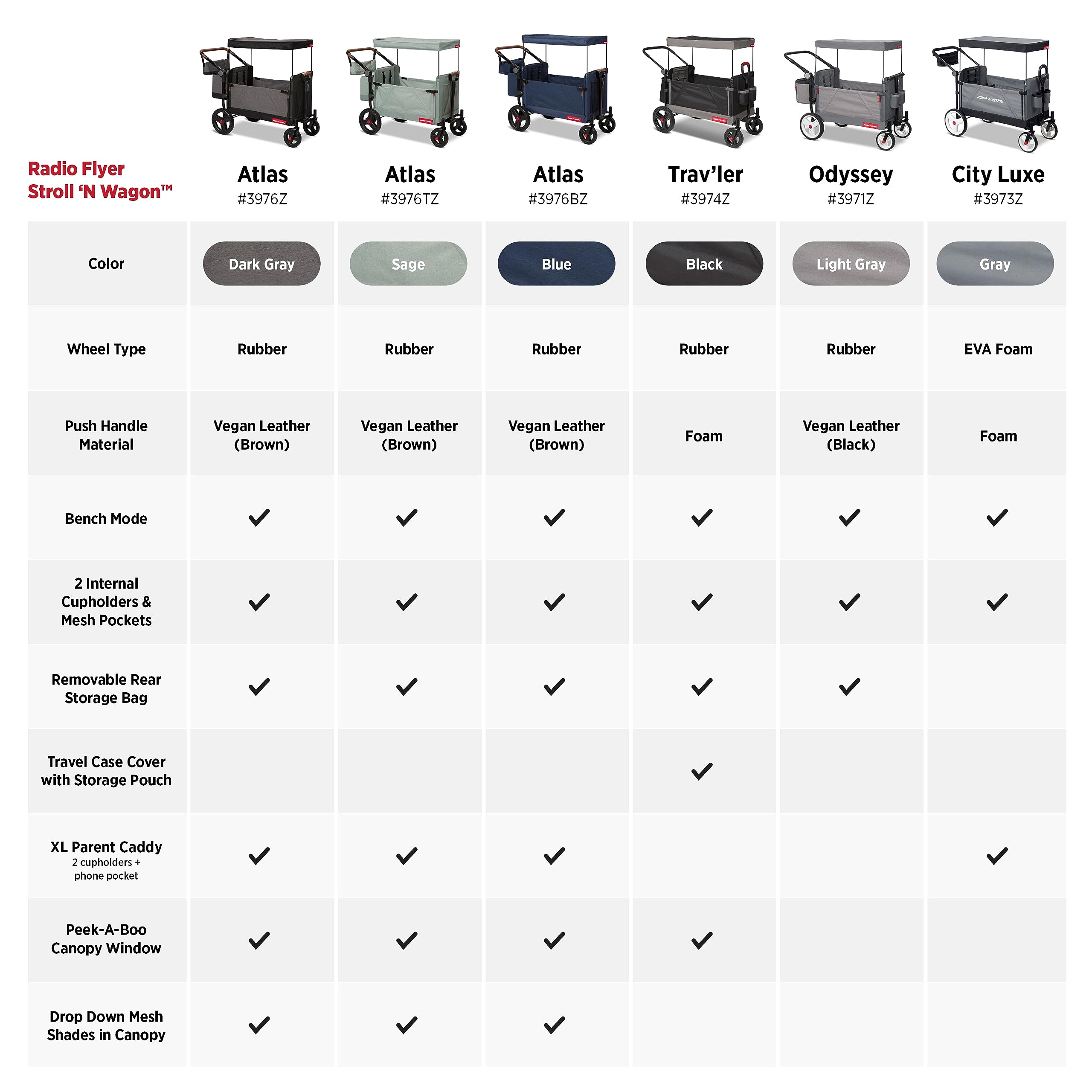 - FEATURES FOR THE WHOLE FAMILY: There is no shortage of storage with the XL parent caddy, internal storage pockets for your kids, front mesh pocket, and removable rear storage bag. The Atlas Stroll u2018N Wagon also includes a UV protection canopy with a peek-a-boo window and drop-down mesh shades on either side, making this the ideal vehicle for your whole family.