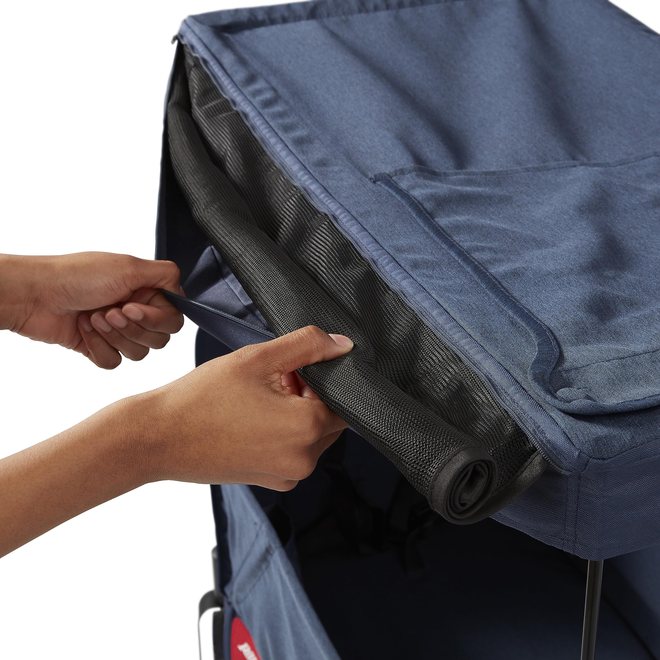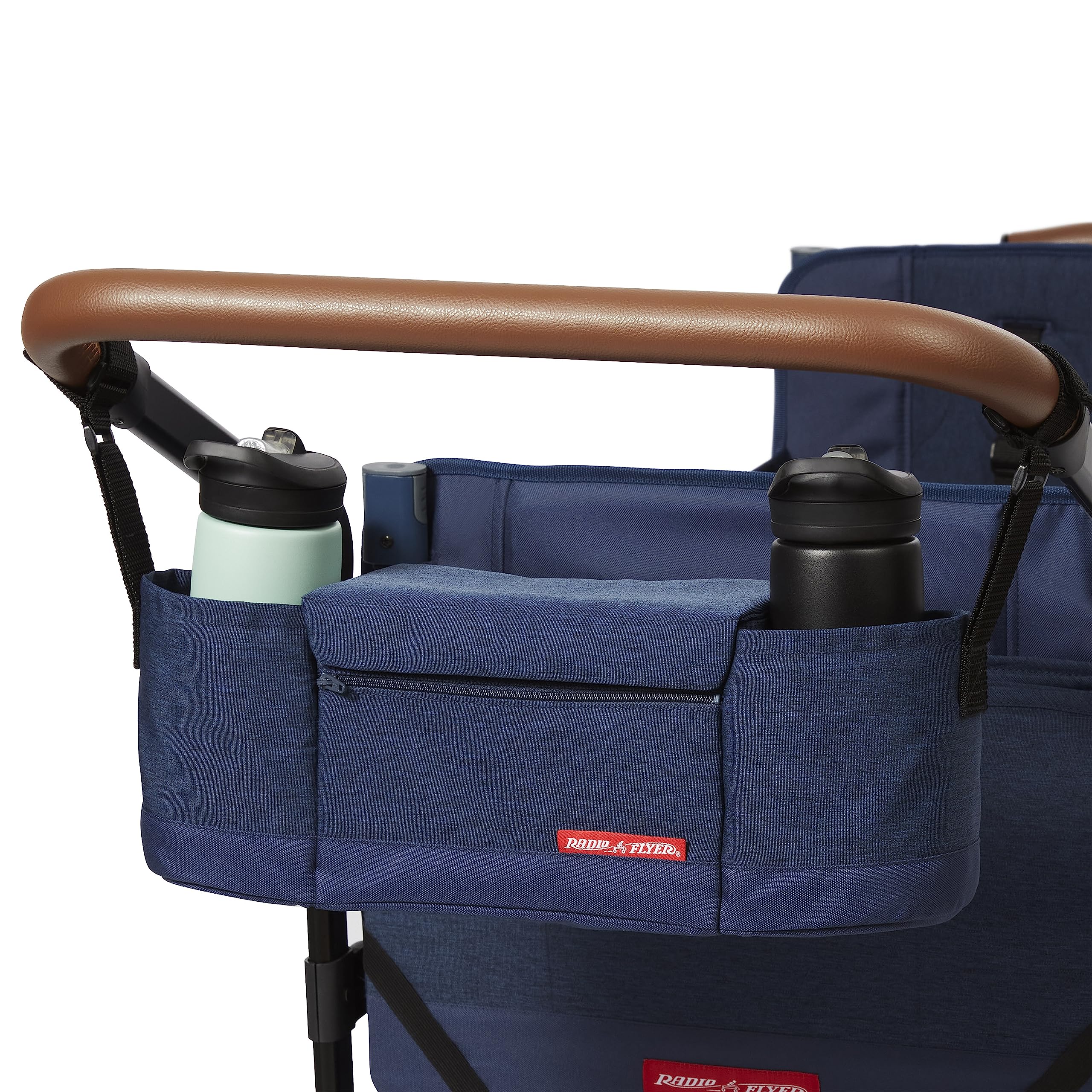 - EXTRA PARENT STORAGE: The included XL parent caddy features 2 insulated cupholders, a zippered storage pouch to keep little items secure, and a center compartment with magnetic lid. The rear storage bag doubles as a convenient tote bag with handles when removed from the wagon.