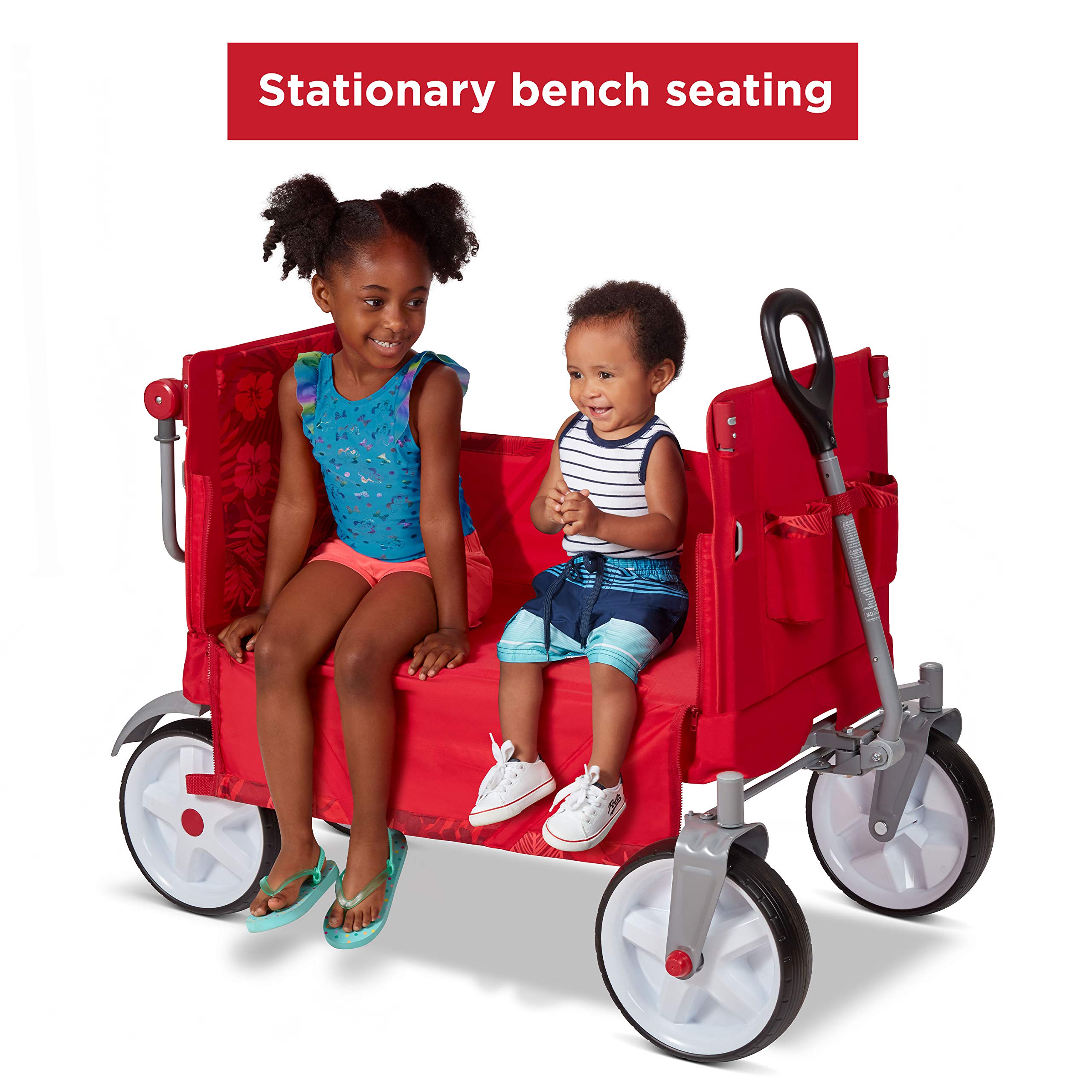 - SAFE FOR KIDS: Radio Flyer wagons pass the ASTM-F963-13 toy safety standard. This wagon includes seat belts and a UV protection canopy to protect your little ones from the sun.
