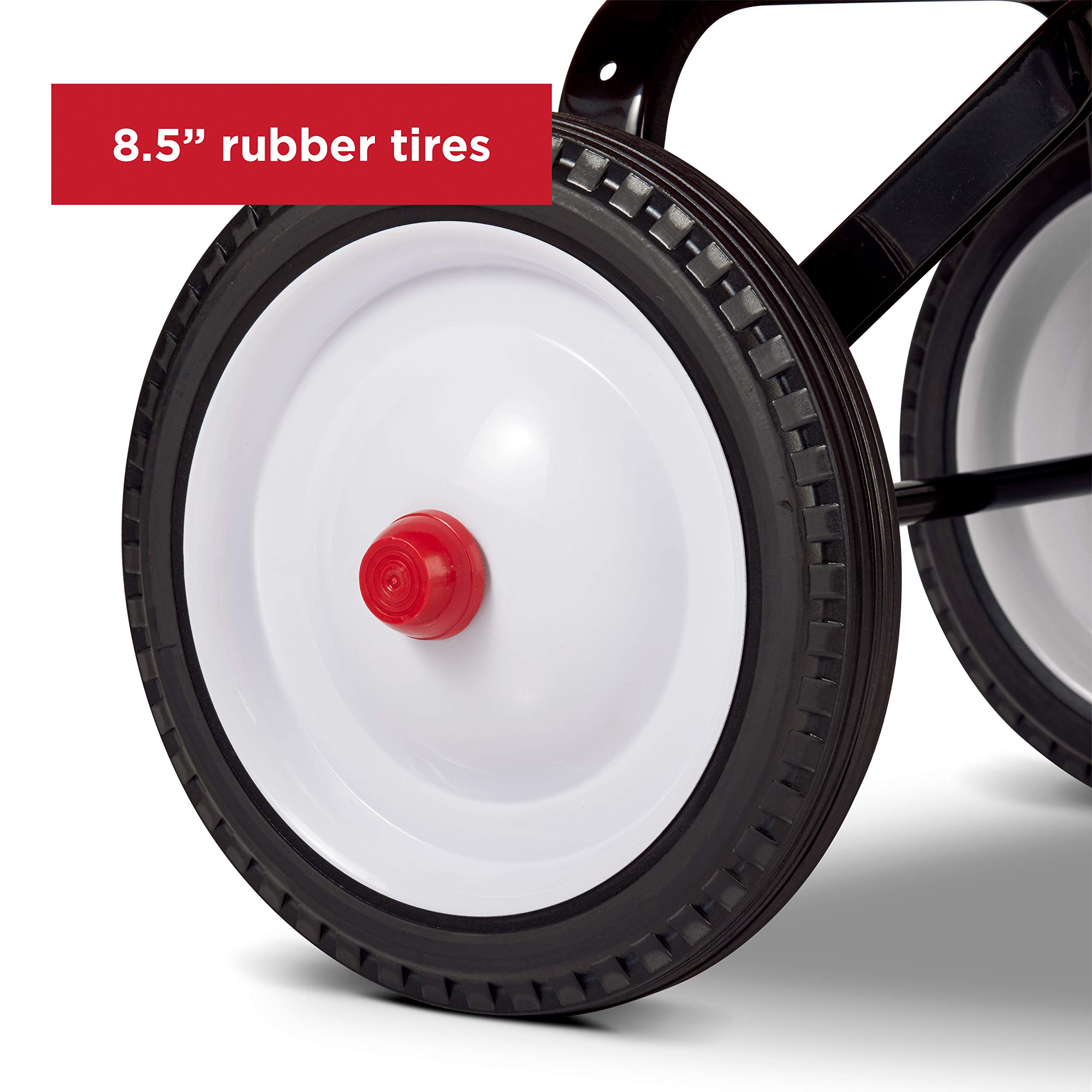 - 10u201d RUBBER TIRES: The rugged rubber tires provide a smooth ride. The tires are 10u201d in diameter, which make this cart perfect for hauling both toddlers and cargo