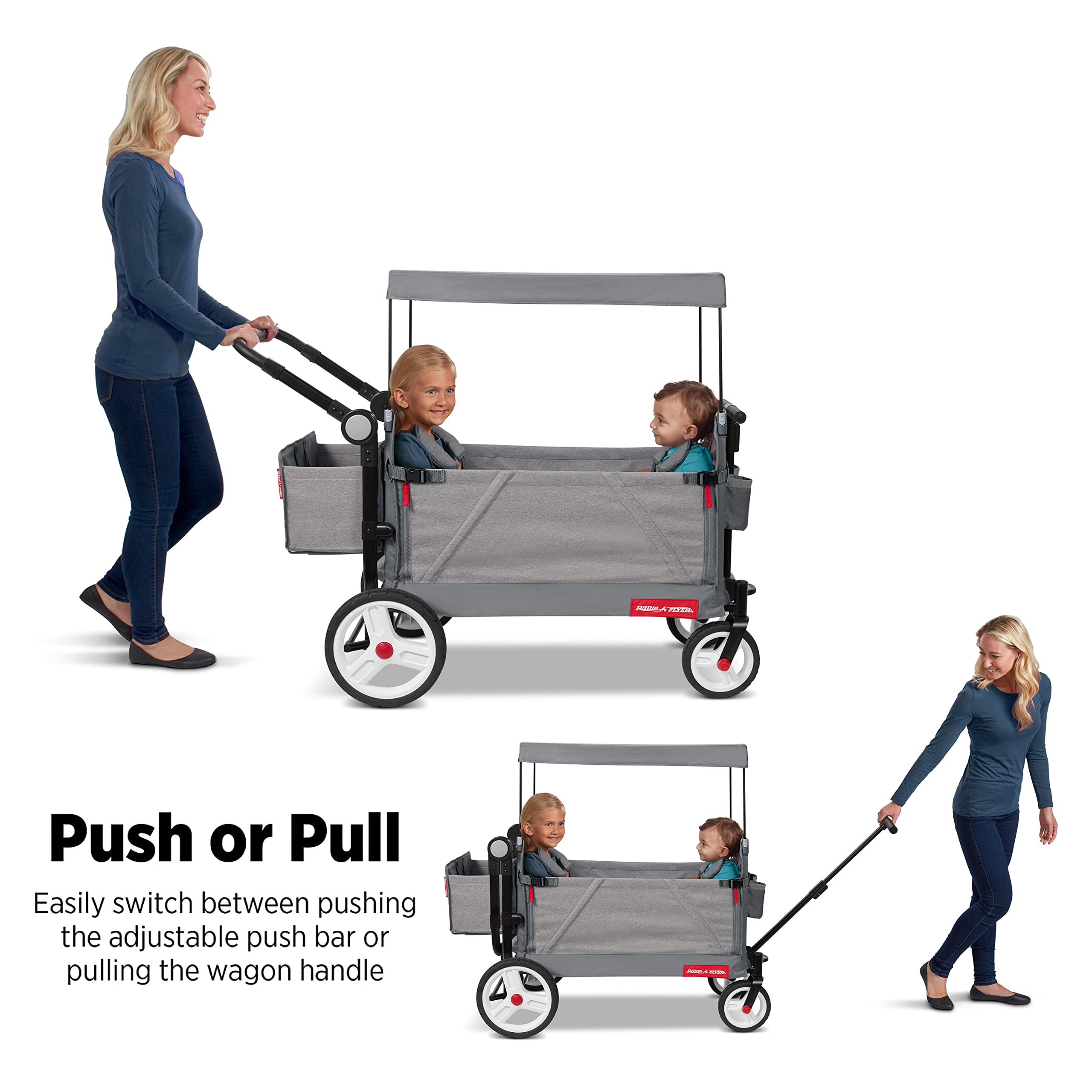 - PUSH & PULL: The Odyssey Stroll 'N Wagon offers the convenience to push and the adventure of a pull wagon in one vehicle. It features a Never Fall wagon pull handle in the front and a fold-away push handlebar on the back.